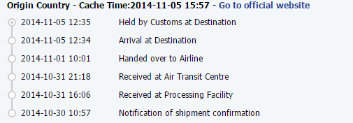 Your order#******* was sent on 2014/10/18 via air mail register with a real tracking number RE*********SE.