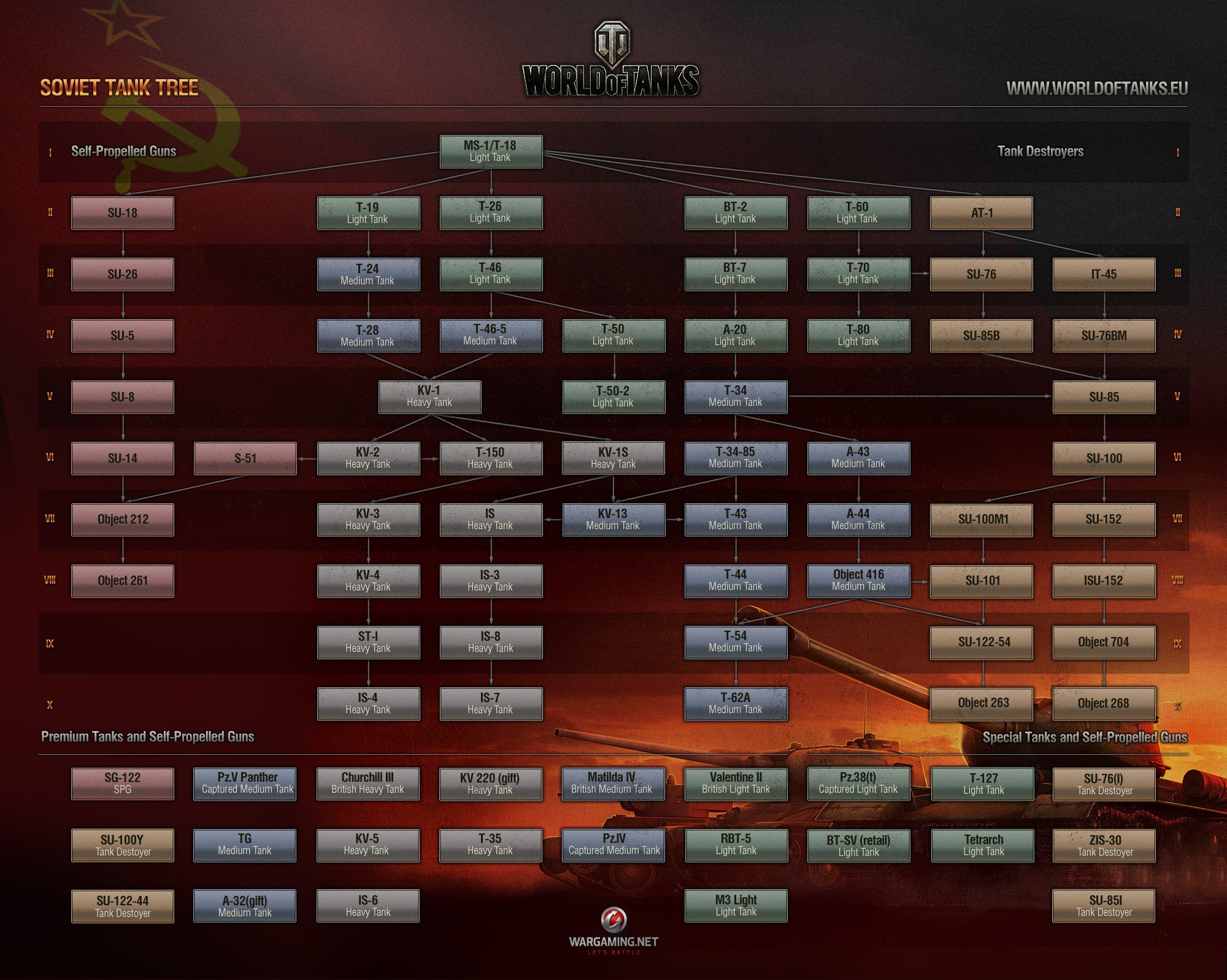 Een overzicht van de volledige tank trees die zich op dit moment in het spel bevinden: