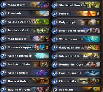 Anyways, dus geen pyro blast, frost nova of ijs regen (ben ff naam kwijt) en geen rare/epic kaarten zoals die ene die je fireballs geeft als je spells cast of die je kaarten geeft als je spells cast (auctioneer), etc.