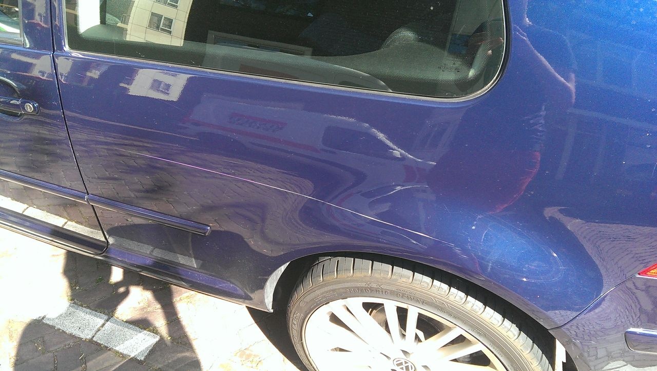 Los van de verzekeringen/wie gaat dokken, die kras zit deze erg diep? En zijn er deuken? Met wat geluk en de juiste spullen kan je die kras toch grotendeels wegkrijgen. Kan alleen niet zien of het gedeukt is op die foto. Maar uitdeuken is volgens mij rond de 50 euro per flinke deuk of iets in die richting. Dat het een klein beetje zichtbaar blijft lijkt me minder erg dan 100en euro's dokken, terwijl de fietser schuld erkend maar niet de volle mep wilt dokken.