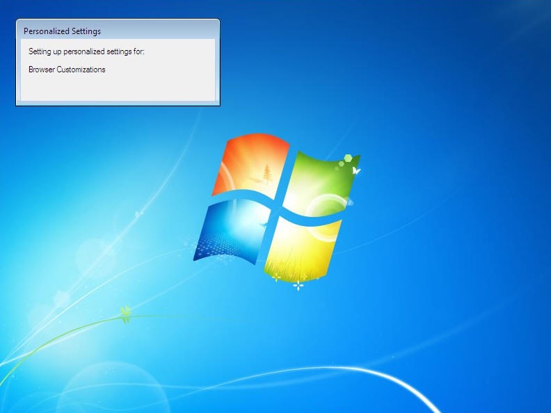 - geeft scherm "Setting up personalized settings for: Windows Desktop Update"