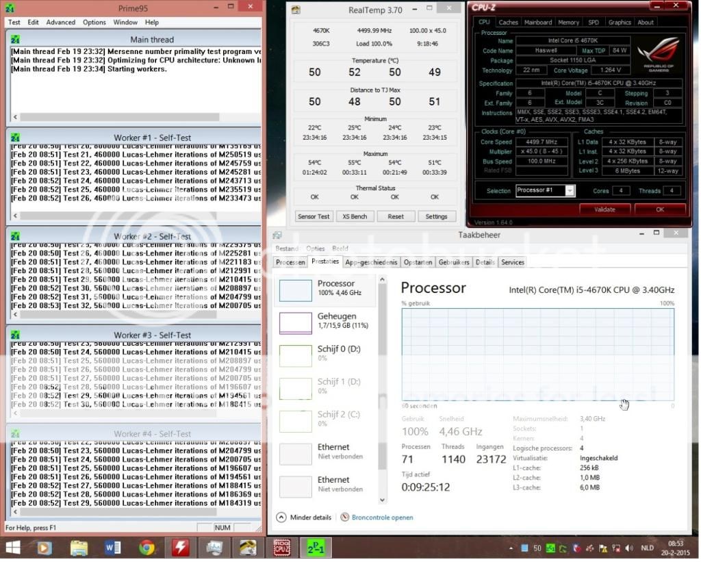 aangezien ik de grenzen wil aanraken probeer ik wat verder te komen, en ik nu 1,40v er doorheen om op een overclock van 4600MHz te komen. maar een goede manier om stabiliteit te testen heb ik nog niet gevonden.