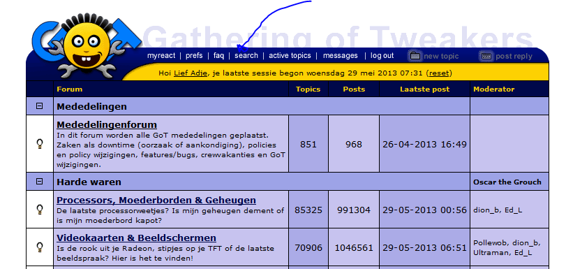 Overigens ga je gewoon naar het forum en niet de frontpage, maar als je niet de default template op het forum gebruikt dan ziet het er wat vreemd uit.