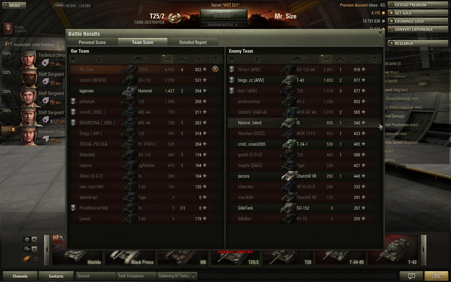 Helaas was vanochtend mijn T32 crew erg unlucky, alleen met de T34 en T32 niet weten te winnen. Rest van de tanks ging het goed tot erg goed in ieder gevalpsychoclown schreef op zaterdag 13 juli 2013 @ 12:12: