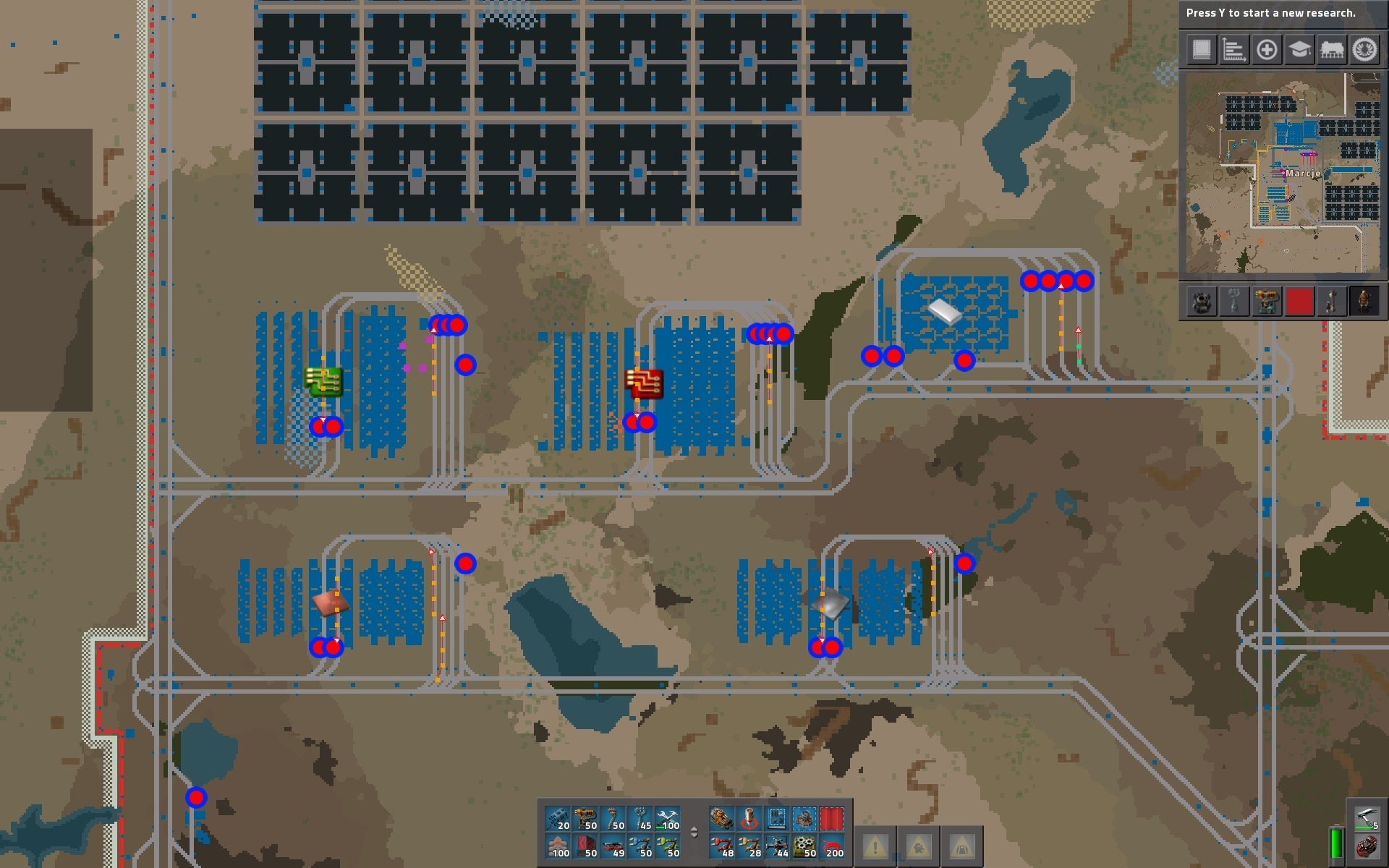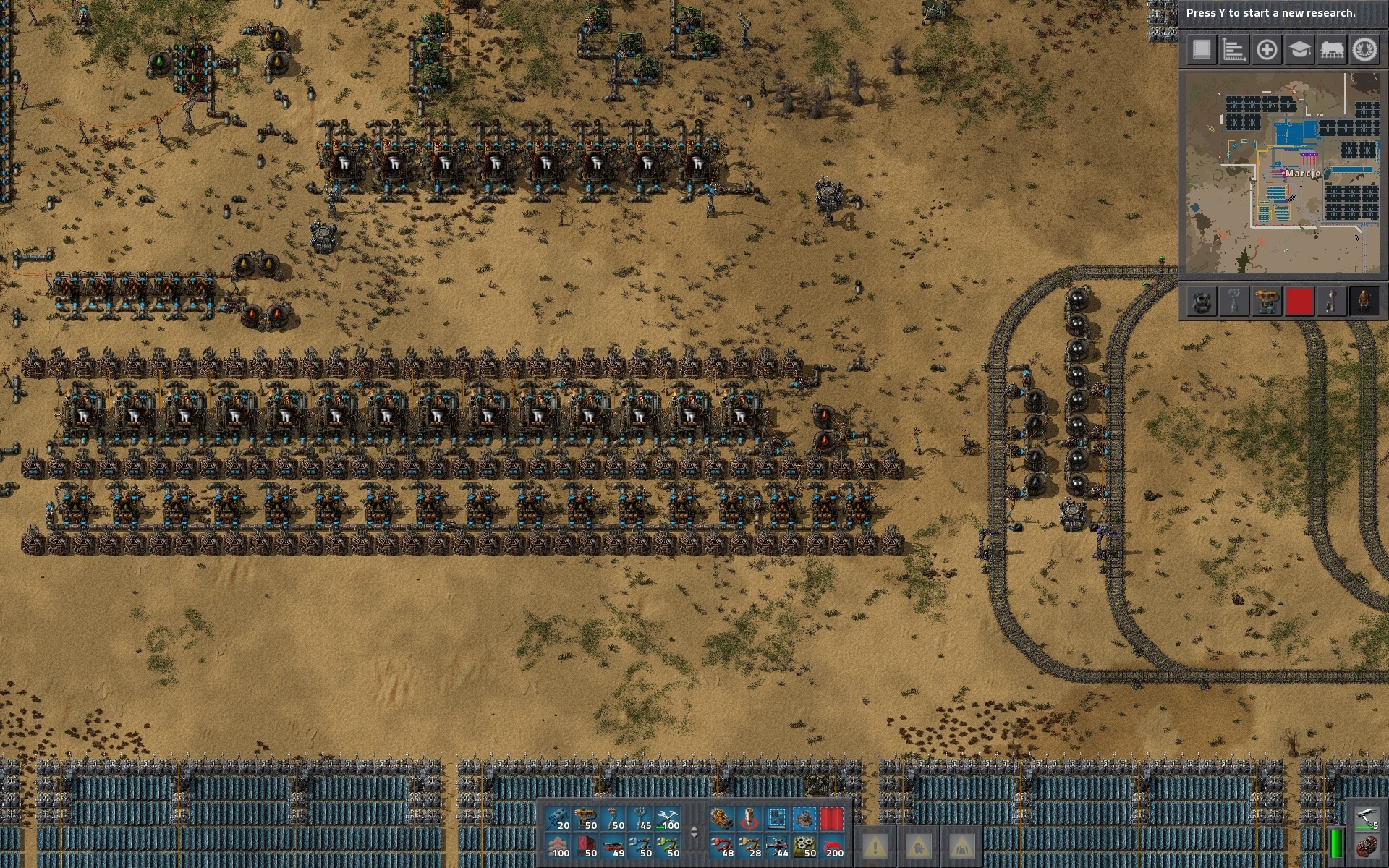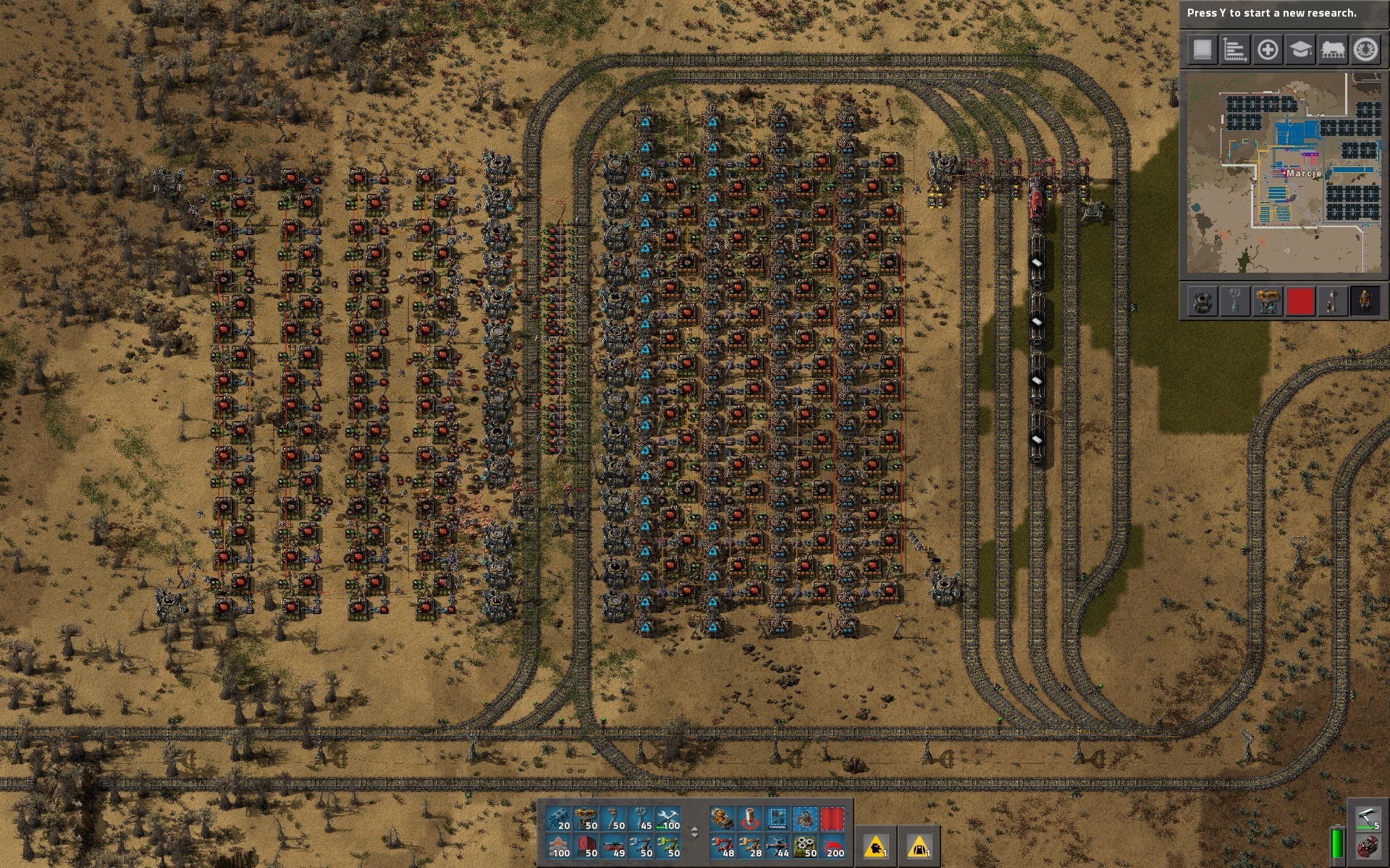 Hierna ga ik aan de oostzijde een koper-hub maken, en daarna een rocket-fuel basis te maken in het noord-oosten (ik draai nu op 3 olie-pompen + kolen-olie). Als dat gereed is, dan komt er een chip-fabriek, petroleumfabriek, plasticfabriek, fabriek voor zwavelzuur, etc.