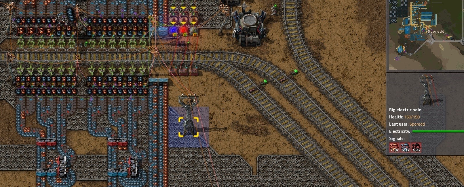 Eigenlijk moet ik nog meer outposts maken voor meer ijzer, 3x ~70M kan niet snel genoeg produceren om 8 treinen met 8 wagons te vullen in het gewenste tempo. Maar ik weet niet of ik nog zin heb om deze verder op te schonen.