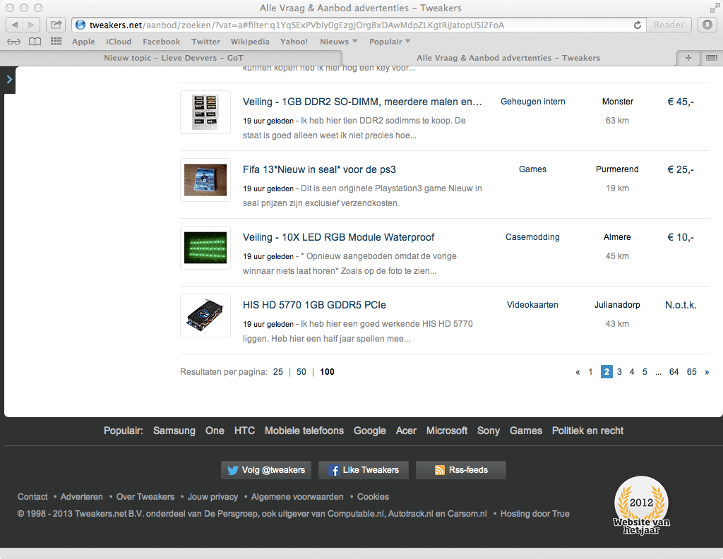 Dit is ook in FF 22 op Windows 7 en ook met 25 en 50 advertenties per pagina.