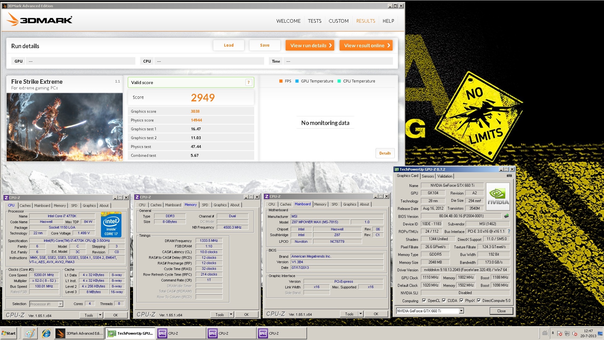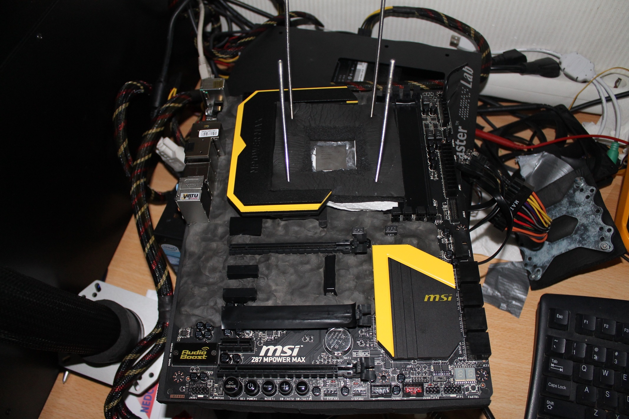 Tijdens deze competitie mogen enkel moederborden en videokaarten van MSI worden gebruikt. Daarnaast is voor deze ronde het verplicht om een Intel core i7 4770K te gebruiken Dus opgesomd: De MSI Z87 Mpower max: Pricewatch link ![]() De MSI Geforce GTX Titan Pricewatch link ![]() De Intel Core i7 4770K Pricewatch link Hiernaast zullen we gebruik maken van: - Gskill ripjawsX 2133 C7 PSC IC’s - Corsair Dominator Platinum 2666 C11 Hynix IC’s - Enermax Maxrevo 1350W - Samsung 830 64 GB SSD - Intel 520 64 GB SSD - Coolermaster Test Bench - Littledevil V2 Single stage phase changer - Kingpin Cooling F1 Gemini CPU pot - Kingpin Cooling Tek-9 Fat GPU koeler |