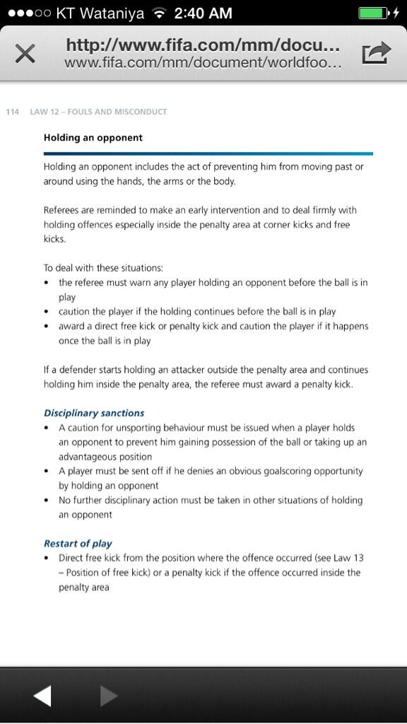 edit: Oke dus een verdediger kan het beste zijn tegenstander al licht vastpakken op de middenlijn, vervolgens vast blijven houden en ergens anders pas doortrekken....vrije trap op de middenlijn