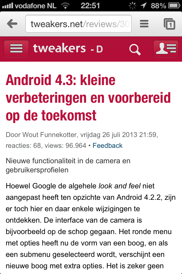 In de hele review kan ik ongeveer 10px zijwaarts scrollen. Artikel lijkt net iets te breed voor de iPhone 4S
