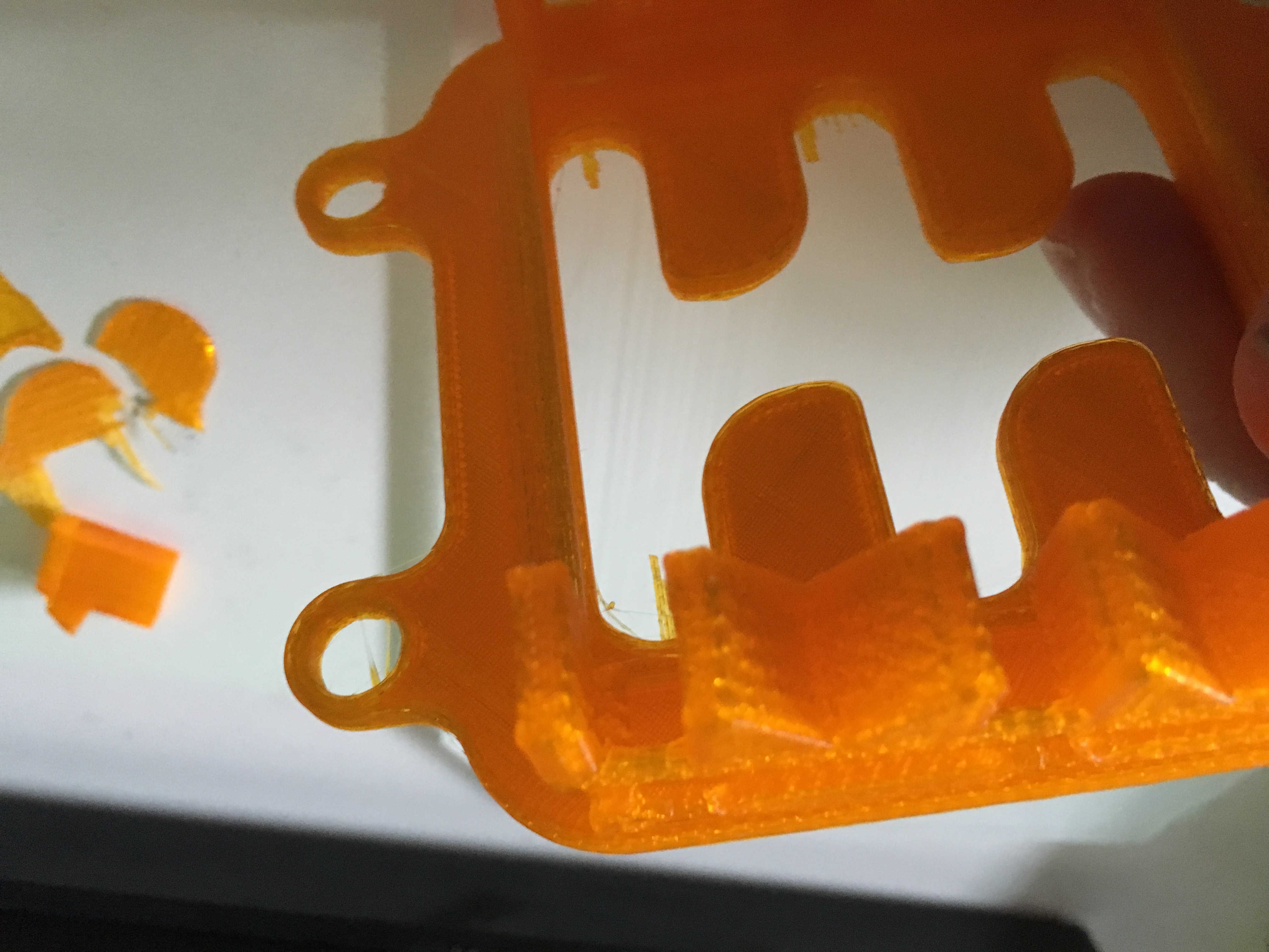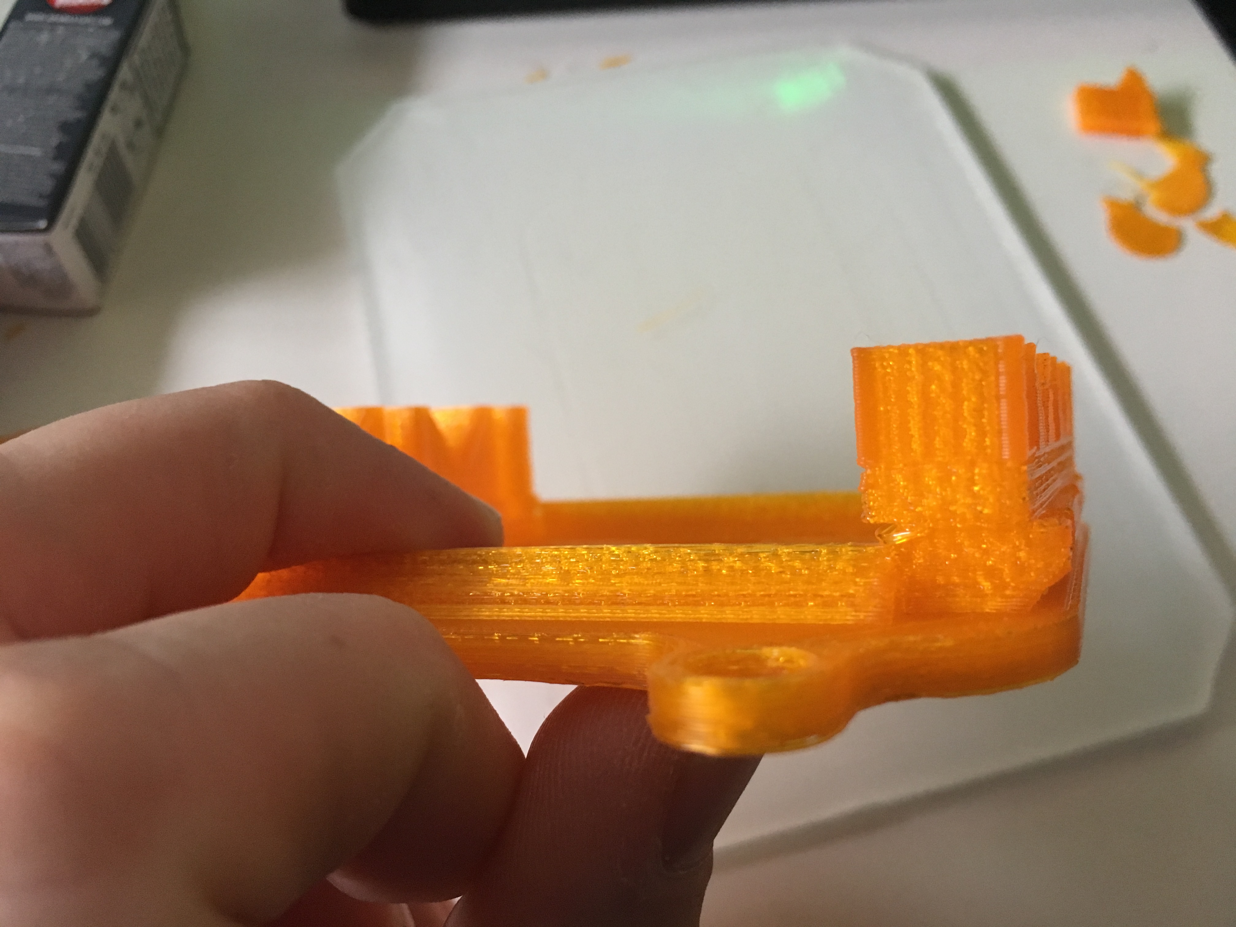 Ik print met PVA PLA Filament oranje 1,75 mm van 123-3D huismerk met de extruder op 200c en het heatbed op 50c (standaard instellingen).