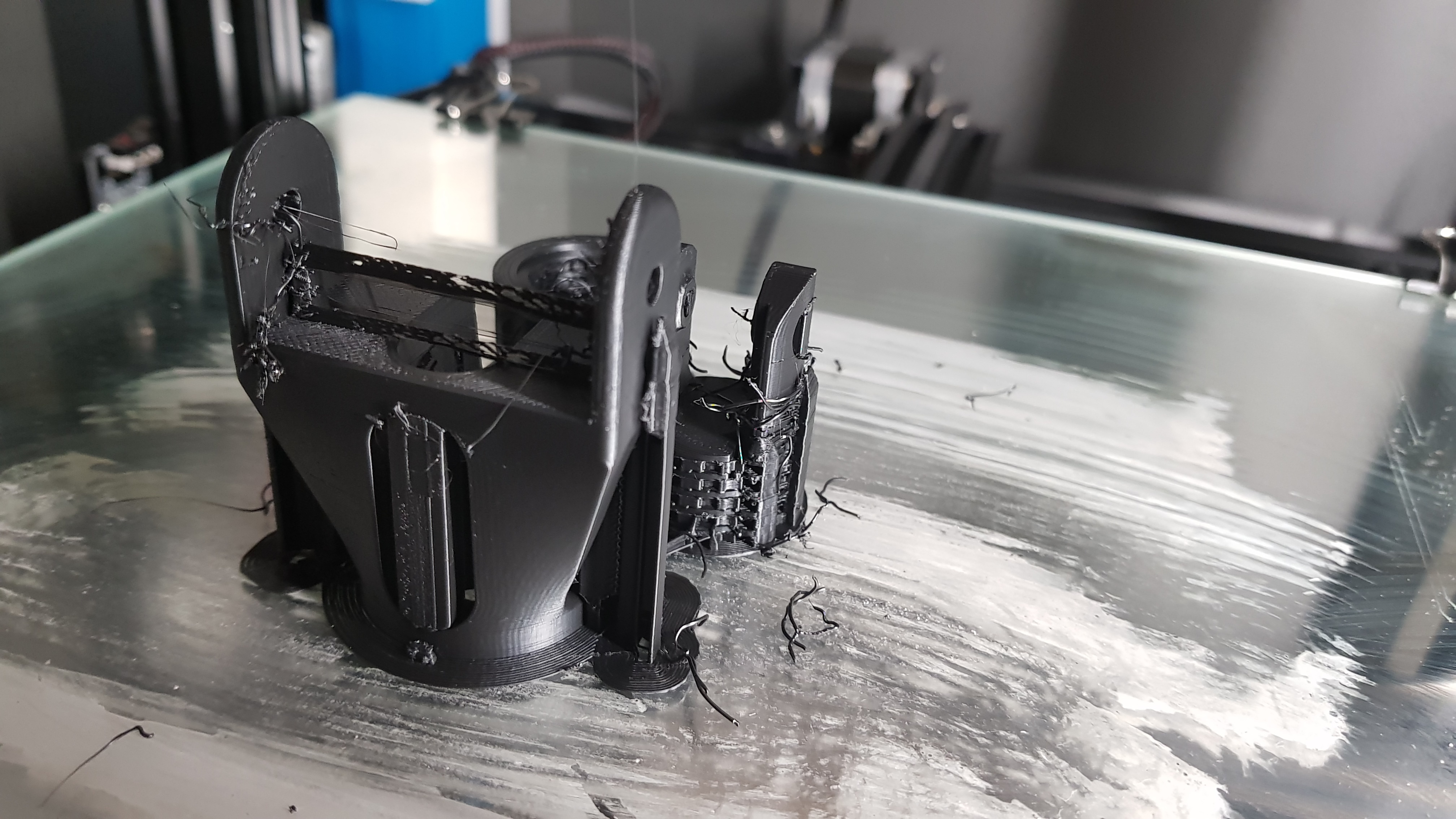 Gisteren heb ik wel voor het eerst de filament runout sensor geprobeerd. Ik wist dat er niet genoeg filament was om de onderdelen te laten printen, maar toch gewoon gestart. Eenmaal dat de sensor werd getriggered, stopte de printer en koelde de hotend af. Een paar klikken en seconden wachten tot de hotend op temperatuur was, nieuw rolletje filament pakken en weer gaan.
