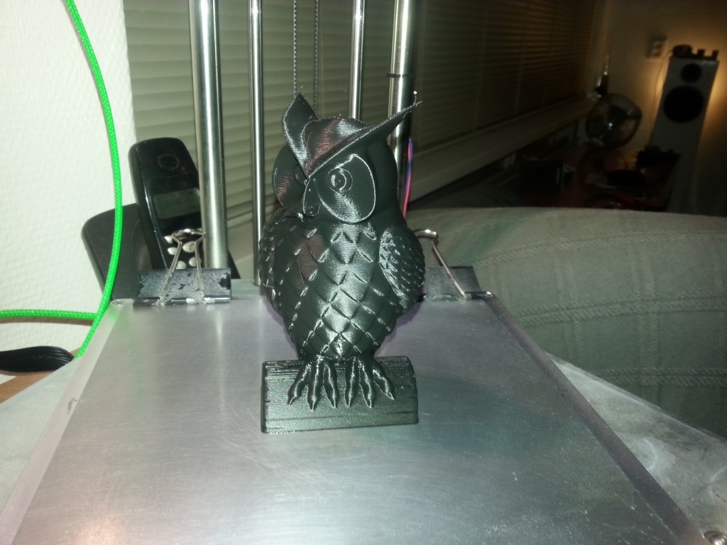 Straks maar weer verder met wat tests... De stepper van de extruder slaat soms stappen over tijdens het printen, nu is dat beter dan dat ie meteen een hoek uit je fillament draait, maar daar moet ik wel even naar kijken. Door de bowden setup heb ik iets meer frictie, en misschien is de korte Nema 17 motor die bij de extruder zat daar net te licht voor... Naja ik heb de oude extruder motor ook nog.