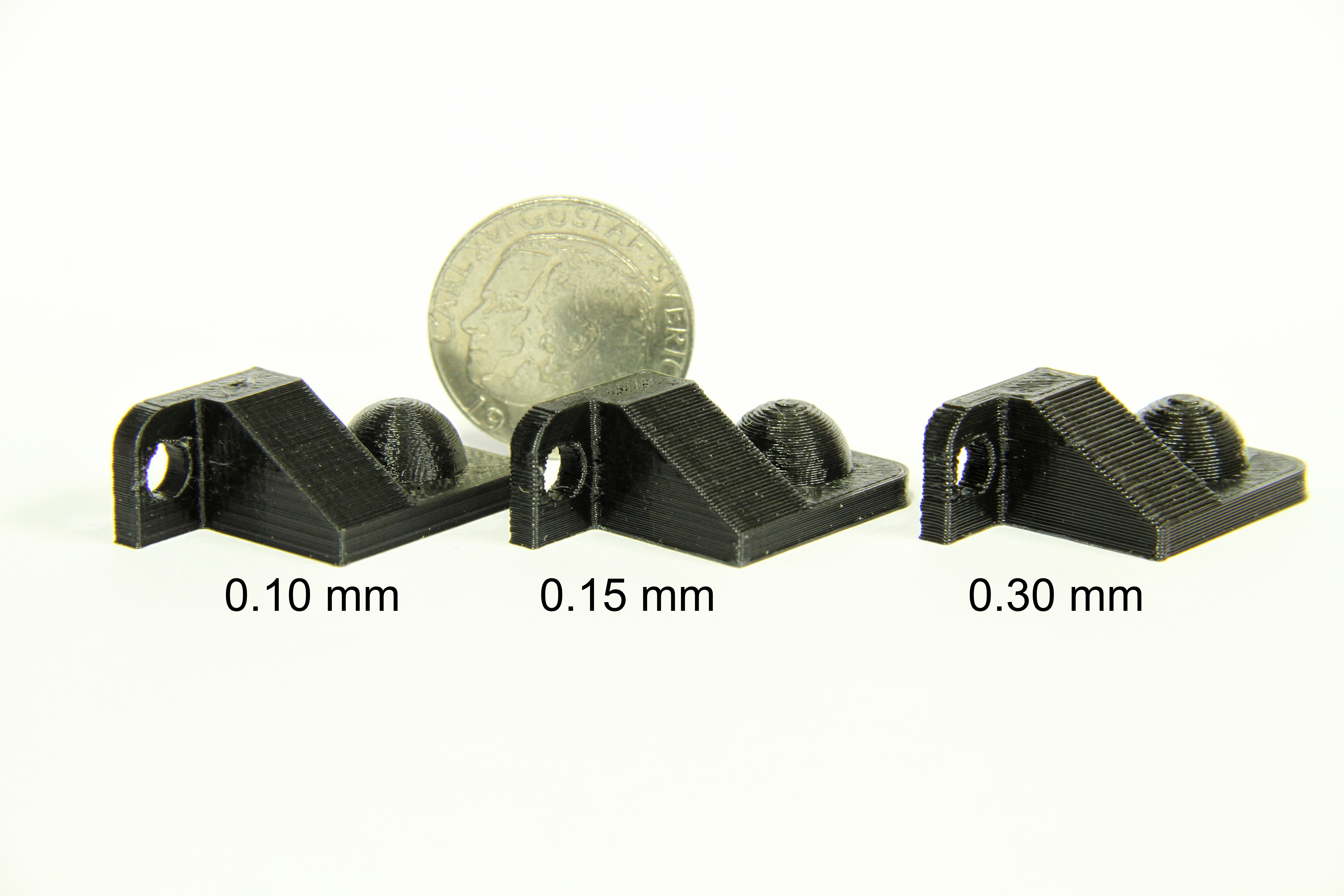 Nog even los van dat een kleinere laaghoogte op deze foto's wel een nettere opening links oplevert, maar dat de groter zijvlakken en ook de bovenkant veel strakker is met de grotere laaghoogte. Met de dunne lagen zie je veel meer variatie, wat een rommelig beeld oplevert. Ook blijken onderdelen met een grotere laagdikte sterker te zijn.