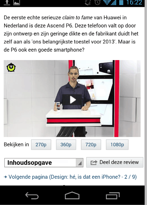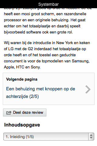 - De inhoudsopgave in een dropselector plaatsen, zoals we ook doen met de quick links op het forum en de acties. Dit zie ik best vaak op verschillende websites wat aardig goed werkt. Het OS zorgt er dan voor dat er voldoende ruimte is om een item in de dropdown te kunnen selecteren. Het nadeel is alleen dat je niet direct weet hoeveel pagina's er zijn, hoe uitgebreid de review is... je mist domweg het overzicht. Iets wat we nu wel hebben en ik graag zou willen hanteren