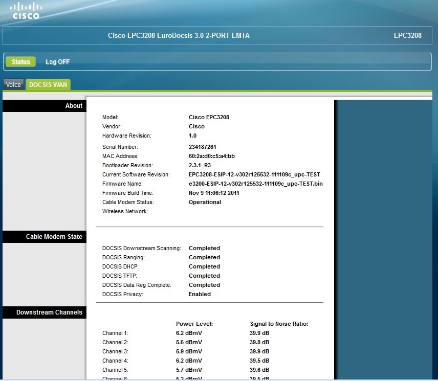 - Cisco EPC 3208 modem