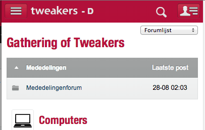 Ik had alleen al wel 1 feature request: Ik snap dat het met responsive niet mogelijk is om alle functionaliteit te bewaren, maar ik mis bij het forum de knoppen 'Mijn Topics', 'Bookmarks' en 'Actieve Topics' erg. Omdat die respectievelijk mijn eerste, tweede en derde favoriete manieren zijn om het forum te browsen. Via de index doe ik eigenlijk nooit en dat is nu de enige manier.