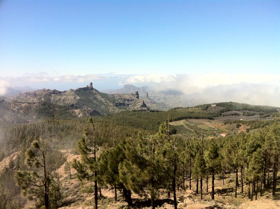 Zeker. Uitvalsbasis afgelopen week was Las Palmas, dus genoeg van de noordkant gezien. Ook veel verschillende wegen die naar boven gaan, en als je beetje van de grootste wegen af gaat dan zitten er de nodige pittige klimmetjes in met stukken van 15/20%. Nadeel is wel dat er vaak wolken tegen de berg aanhangen met als gevolg mist en regen. Bij de laatste klim kwamen we pas uit de mist toen we al praktisch op de top van de Pico de las Nieves stonden. Foto'tje van de top met Tenerife in de verte: