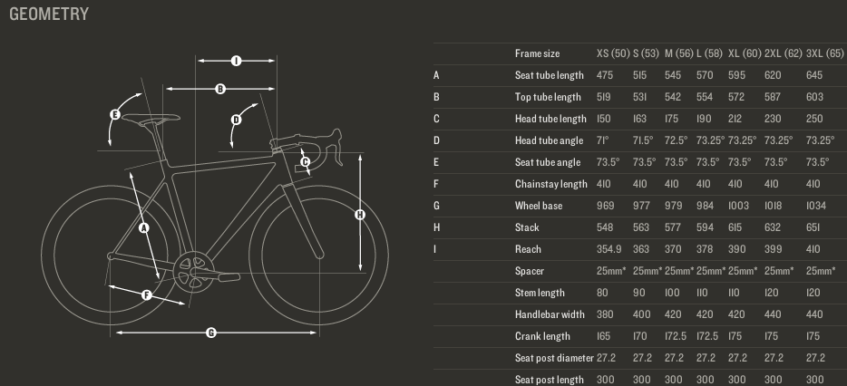 Nee, Makkelijk kijkt verkeerd. Bij de Ridley moet je de C' vergelijken met de L bij de Wilier, dat is de effectieve bovenbuislengte (onafhankelijk van slope). De overige maten komen allemaal ook behoorlijk overeen tussen de L Ridley en de XXL Wilier, alleen de balhoofdbuis bij de Ridley is, zoals je zelf ook aangaf, een stukje hoger.