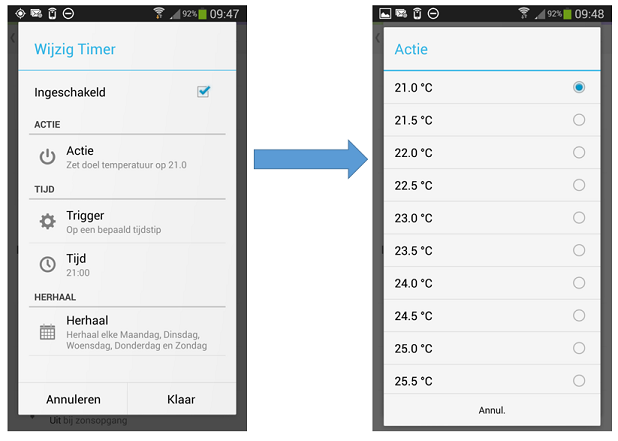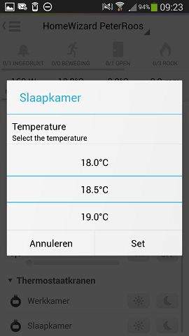 Ook heb ik gevraagd of het niet mogelijk is de app aan te passen voor schakelen op 0,1 graad. Met die nauwkeurigheid konden ze niet om gaan was het antwoord.