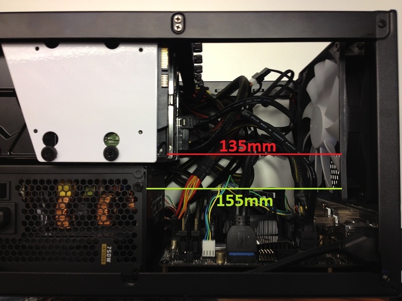 Ik heb slechts beperkte speelruimte in een node 304 voor de cpu koeler zoals je in onderstaande foto's kunt zien: