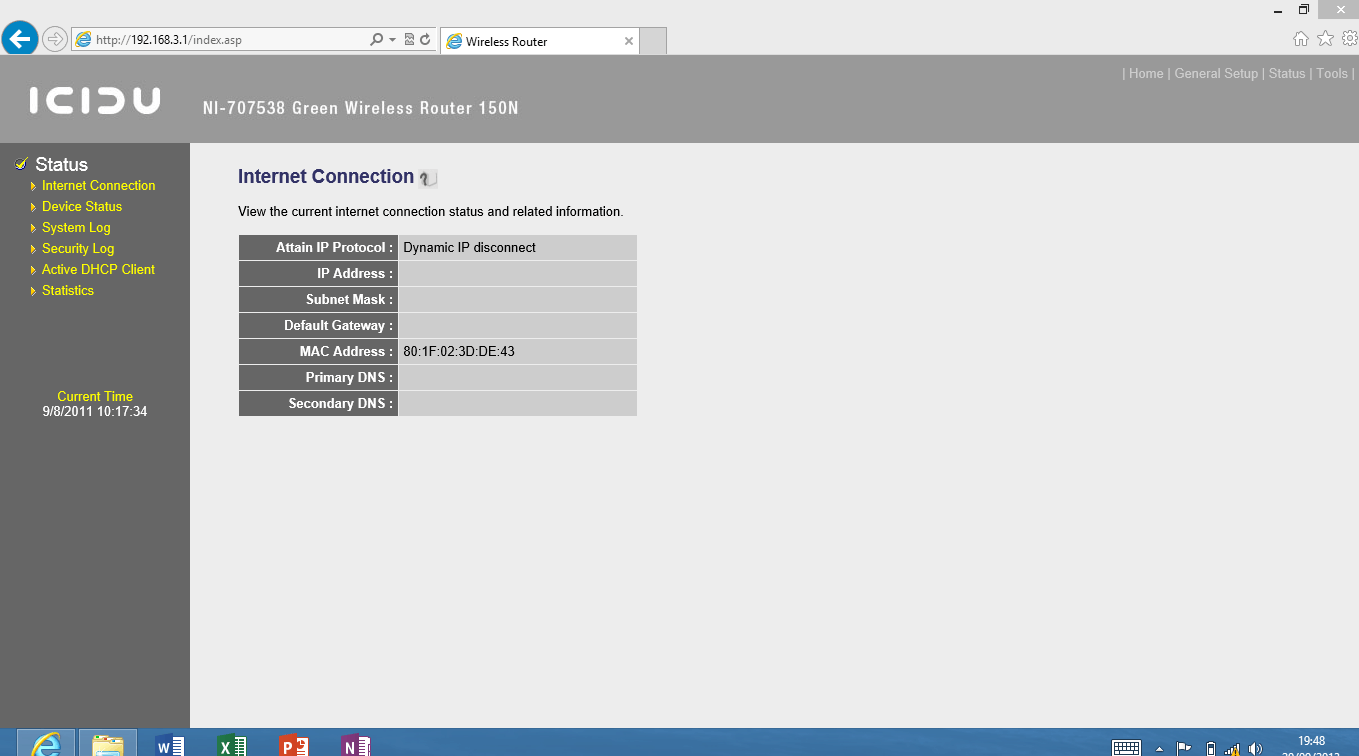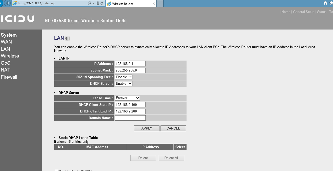 Ik dacht dus even een goedkope router kopen en instellen als 2e router. Heb een ICIDU Wireless Eco Router 150N gekocht en even thuis uitgeprobeerd. De situatie hier is: Modem -> Router -> Switch -> 2e Icidu router.