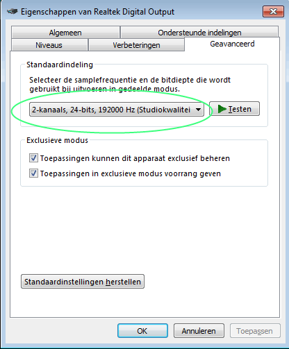 Wel zie ik in "device options " dat er groene balkjes komen ( dus hij doet het wel ) maar ik hoor niets .