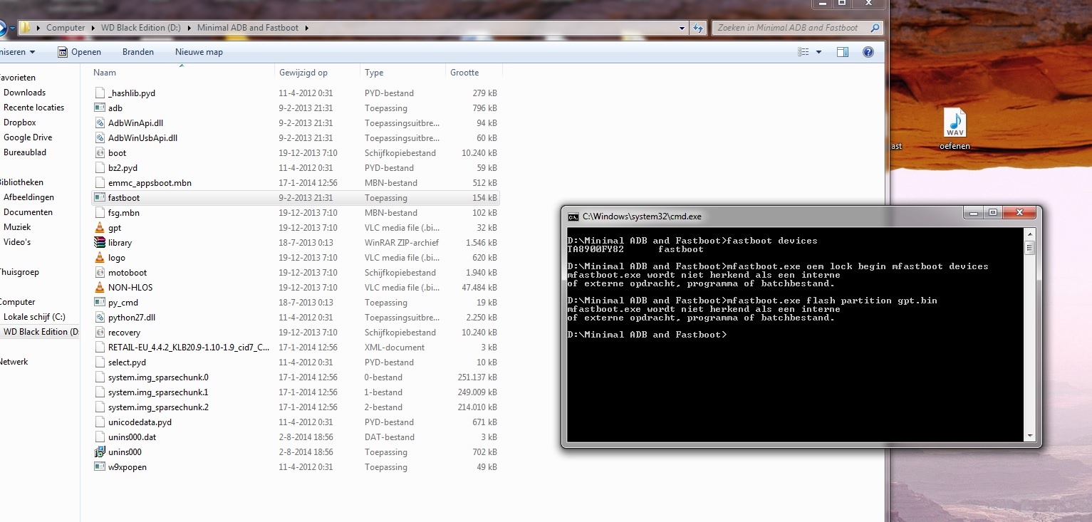 Command werkt niet omdat je mfastboot niet in die dir hebt staan...