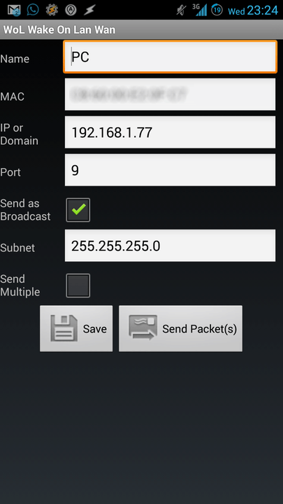 Mijn telefoon zit op het wifi netwerk van de router en ik gebruik een Android WoL app die het netwerk scant en zelf een lijst geeft met beschikbare PCs (IP en mac adres). Maar als ik daarna mijn pc uitzet krijg ik 'm niet opgestart. Wat mis ik?