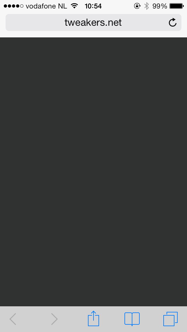 De browser geeft bij elk eerste bezoek van een nieuwe browsersessie een grijs scherm weer wat wel te verplaatsen is, maar verder geen informatie weergeeft. Een aantal keer refreshen of de optie Desktopversie opvragen aanvinken binnen de browser zelf verhelpt dit wel uiteindelijk. De browser laat wel heel kort even de normale desktopversie zien terwijl deze nog aan het laden is, maar springt dan vervolgens op grijs.