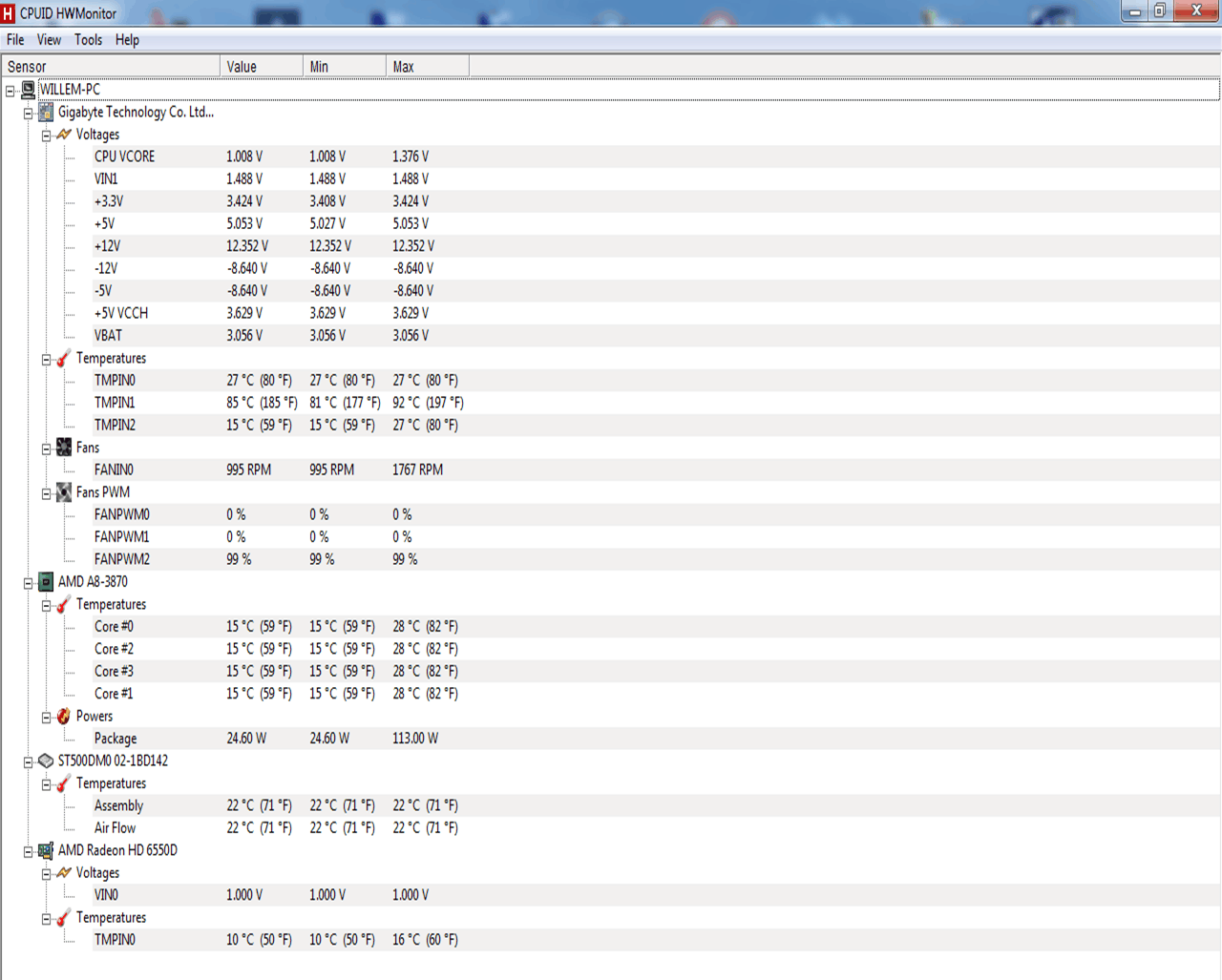 Desondanks zou ik de voeding wel zien als eerste verdachte. En zelfs als de waardes er goed uitzien (en liever meet je het met een multimeter ipv softwarematig) kan het zomaar zijn dat er fluctuaties zijn die je niet zo makkelijk meet, maar die wel nare gevolgen hebben. Ofwel: vervang de voeding tijdelijk eens door een ander exemplaar?