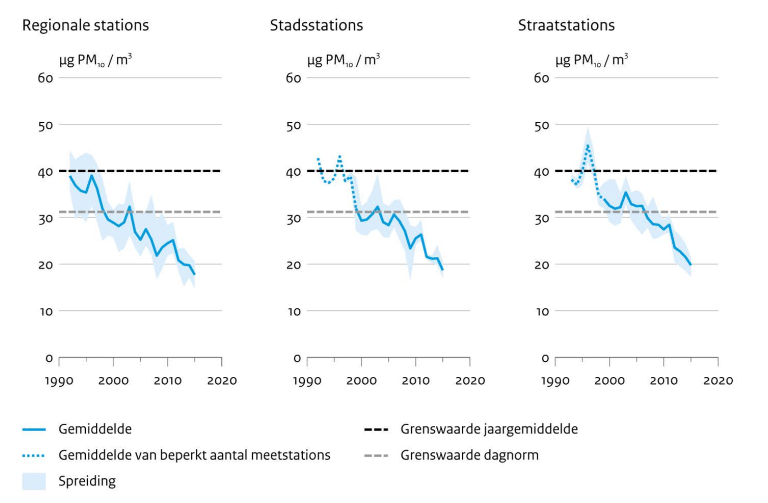 2 Hoogerbrugge R, Nguyen L, Wesseling JP, Van den Elshout S, Willers S, Visser JEA, e.a. Trendanalyse toont: concentraties PM10 en NO2 blijven dalen. Tijdschrift Lucht 2016;