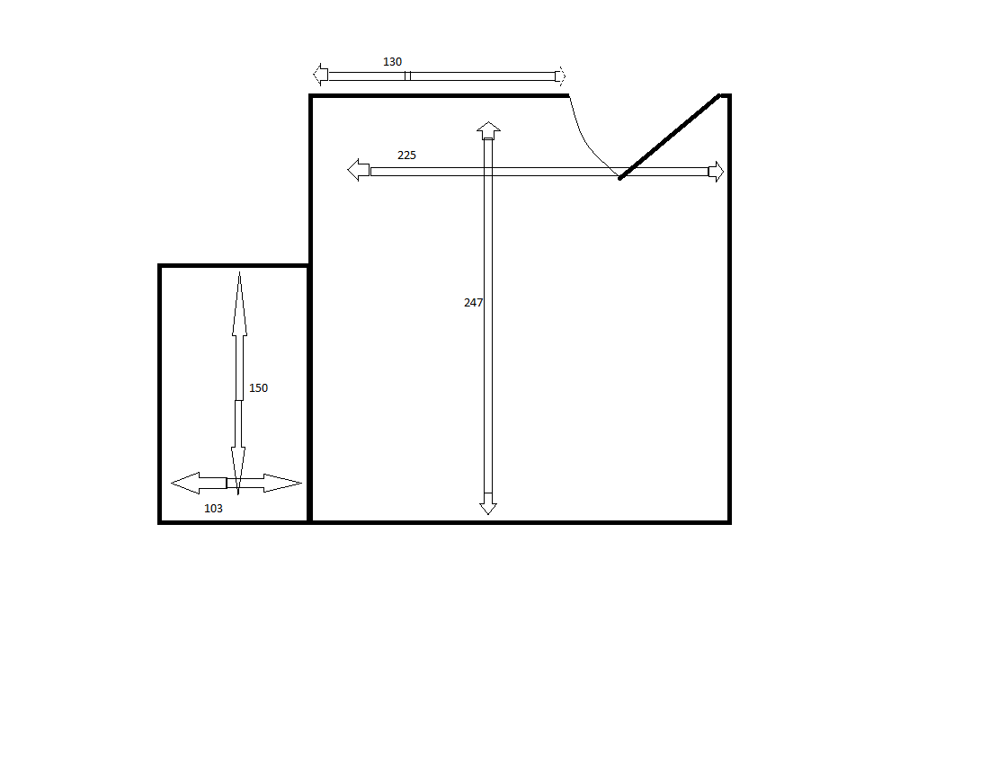 Dit word de ruimte (niet op schaal) waar ie eventueel zou moeten komen. Daarbij moet dan nog een normaal bureau, een diepvries, en bij voorkeur ook nog wat boekenplanken/bergruimte passen