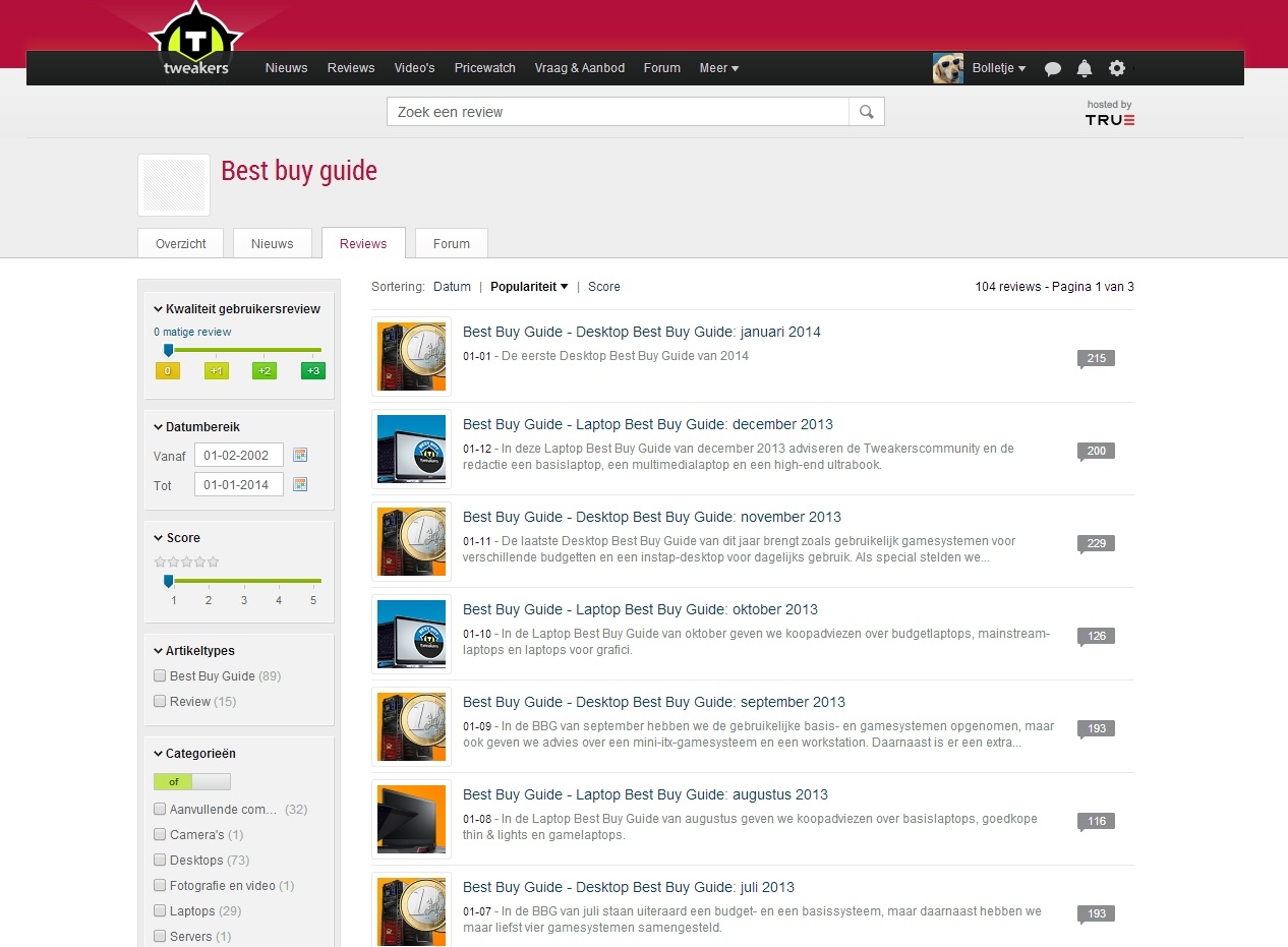 Probeer overzicht van alle BBG's te komen om bijv. naar laptops te kijken, dus klik op de tag 'best buy guide' : http://tweakers.net/tag/Best+buy+guide/reviews/