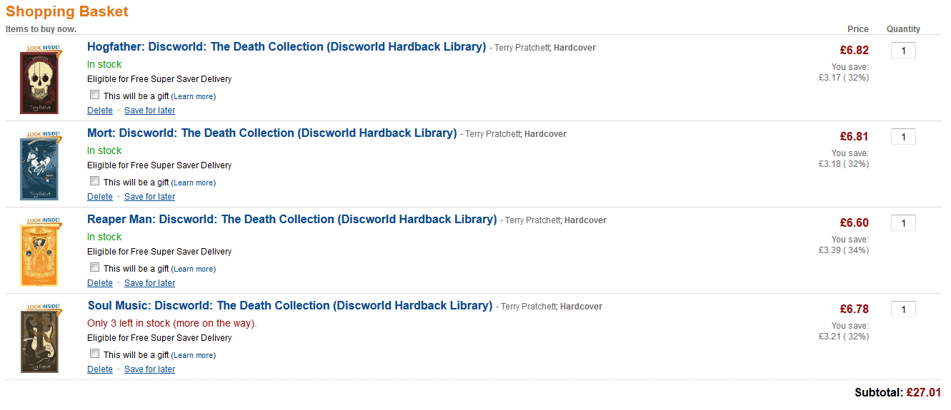 Het viel mij vandaag op dat de prijzen bij Amazon ineens hoger waren bij de check out. Ik irriteerde mij er al aan dat je niet kunt zijn wat het totaal bedrag is tot dat je daadwerkelijk een betaal methode hebt gekozen (dus verzend kosten zie je niet) maar toen zag ik dat de prijzen ook hoger waren.