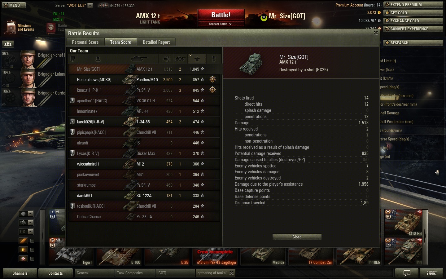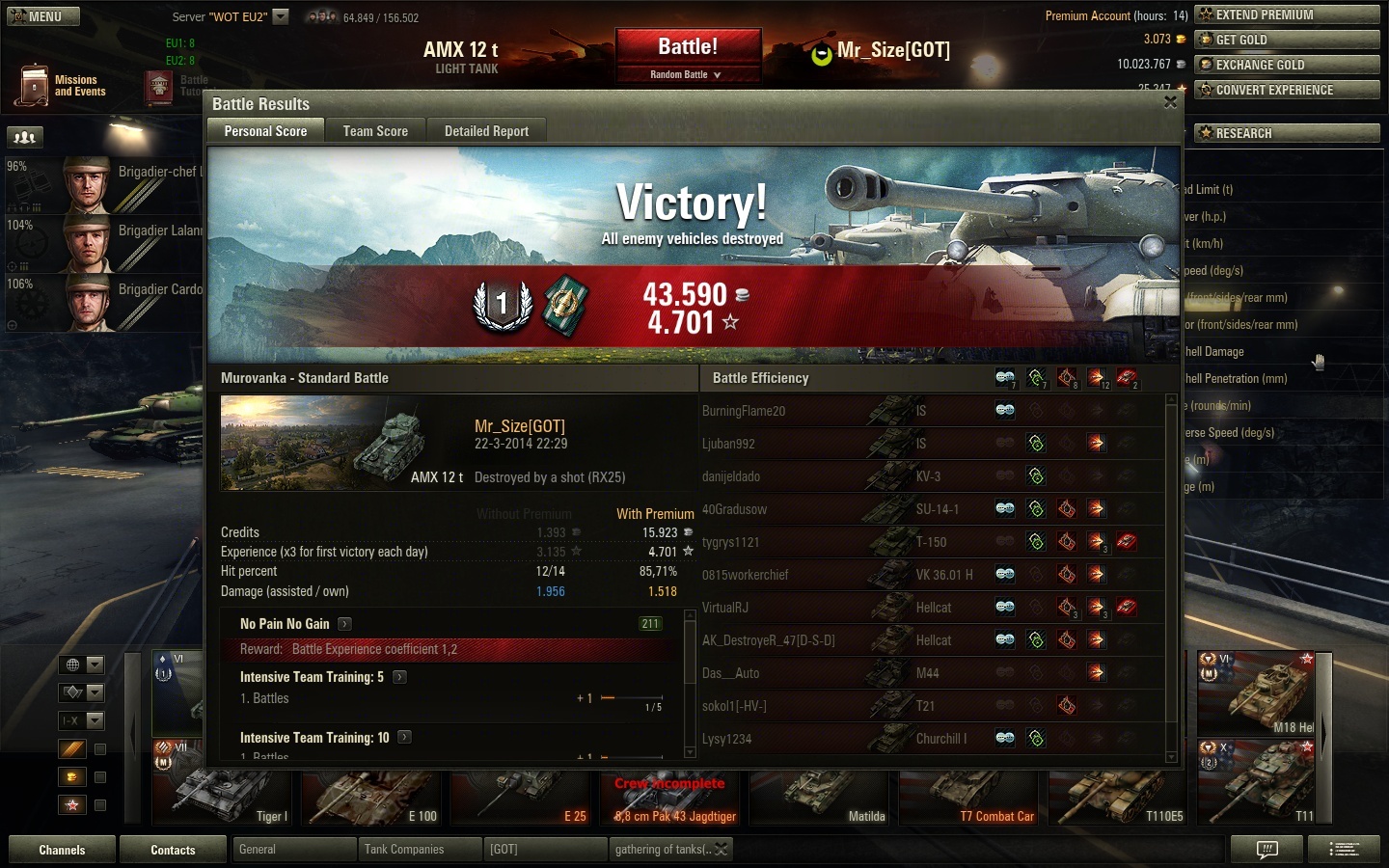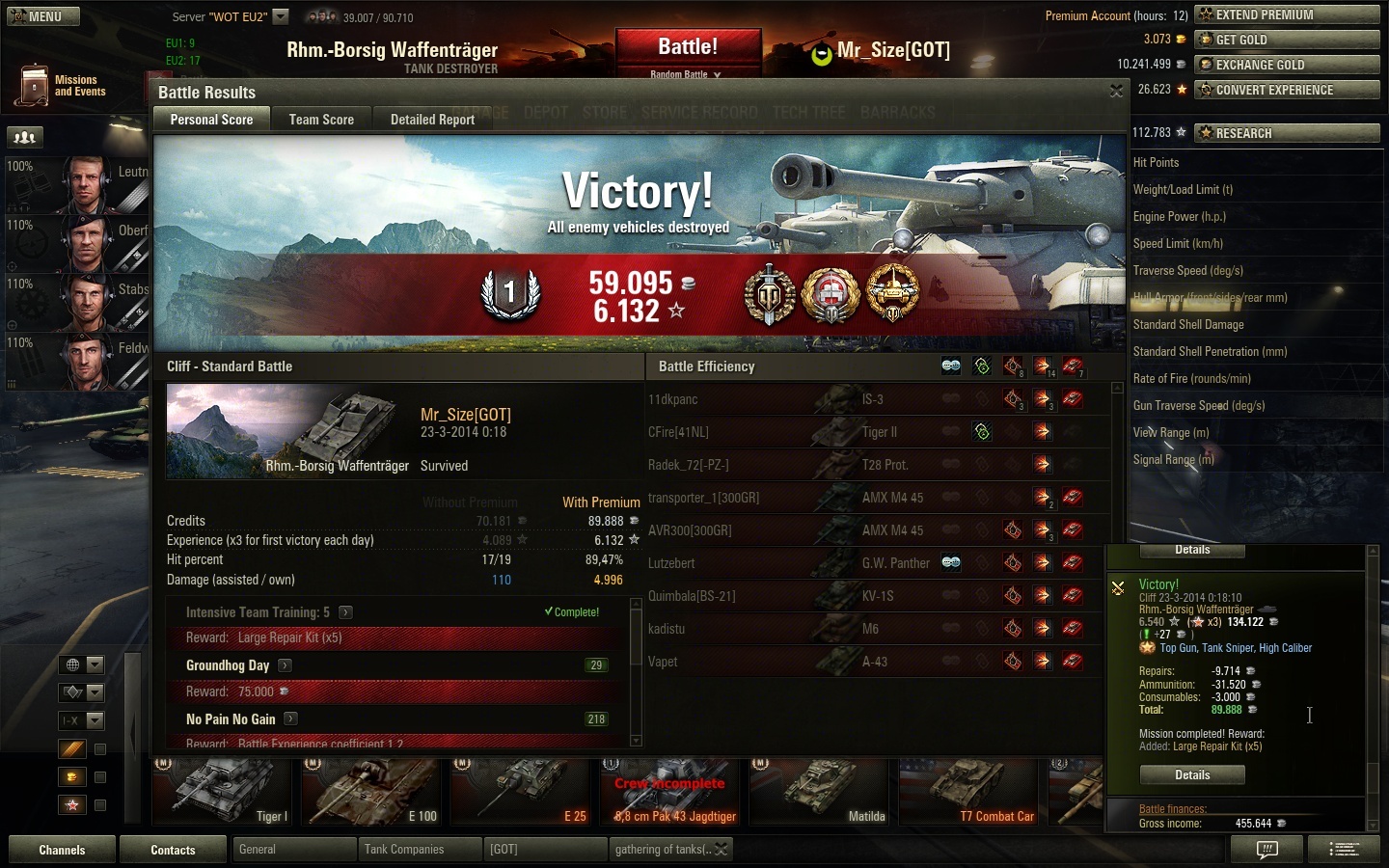 En natuurlijk veel credits binnengekregen, ik heb 900.000 credits winst gemaakt met een average tier van 8.7 ofzo