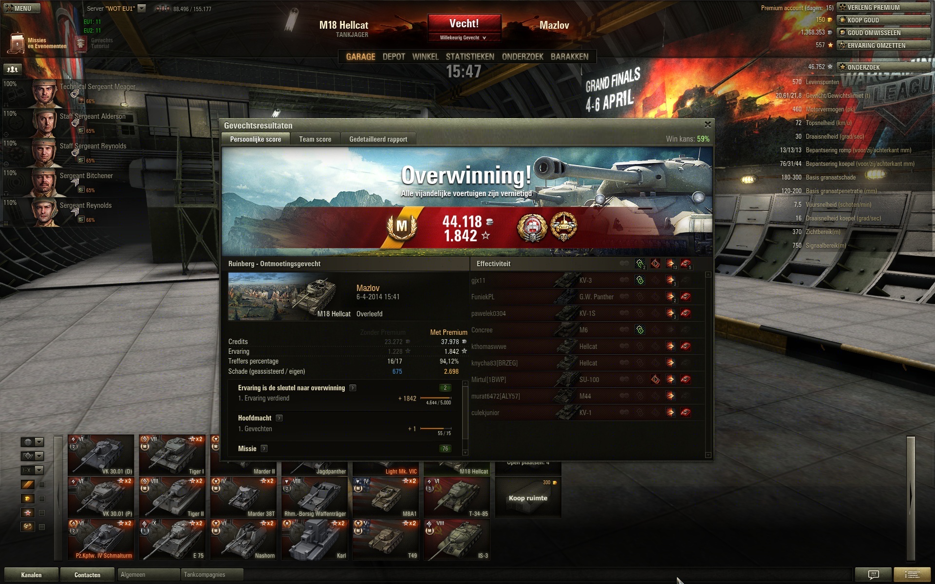 Heb dit weekend mijn eerste Ace binnengehaald op de Hellcat. 3272 damage in een tier 8 match.