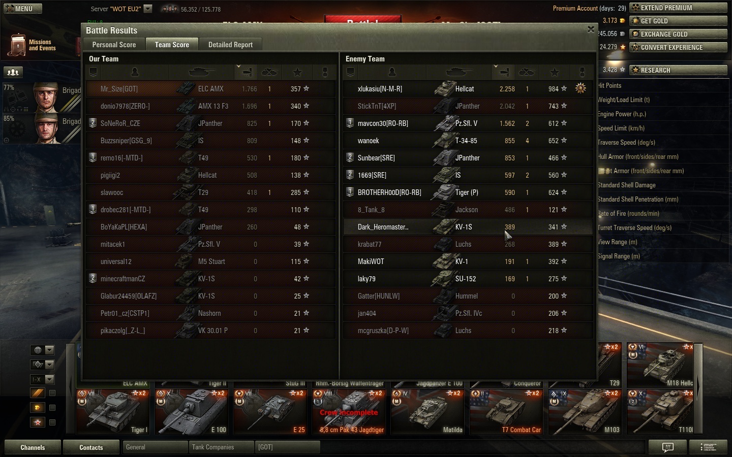 Het was een meest tier 7+ game met 8 tier 8's, slechts een paar KV1-s'en. Enemy team was véél beter ook nog eens (eerste 7 tanks elk 1000 dmg gedaan).