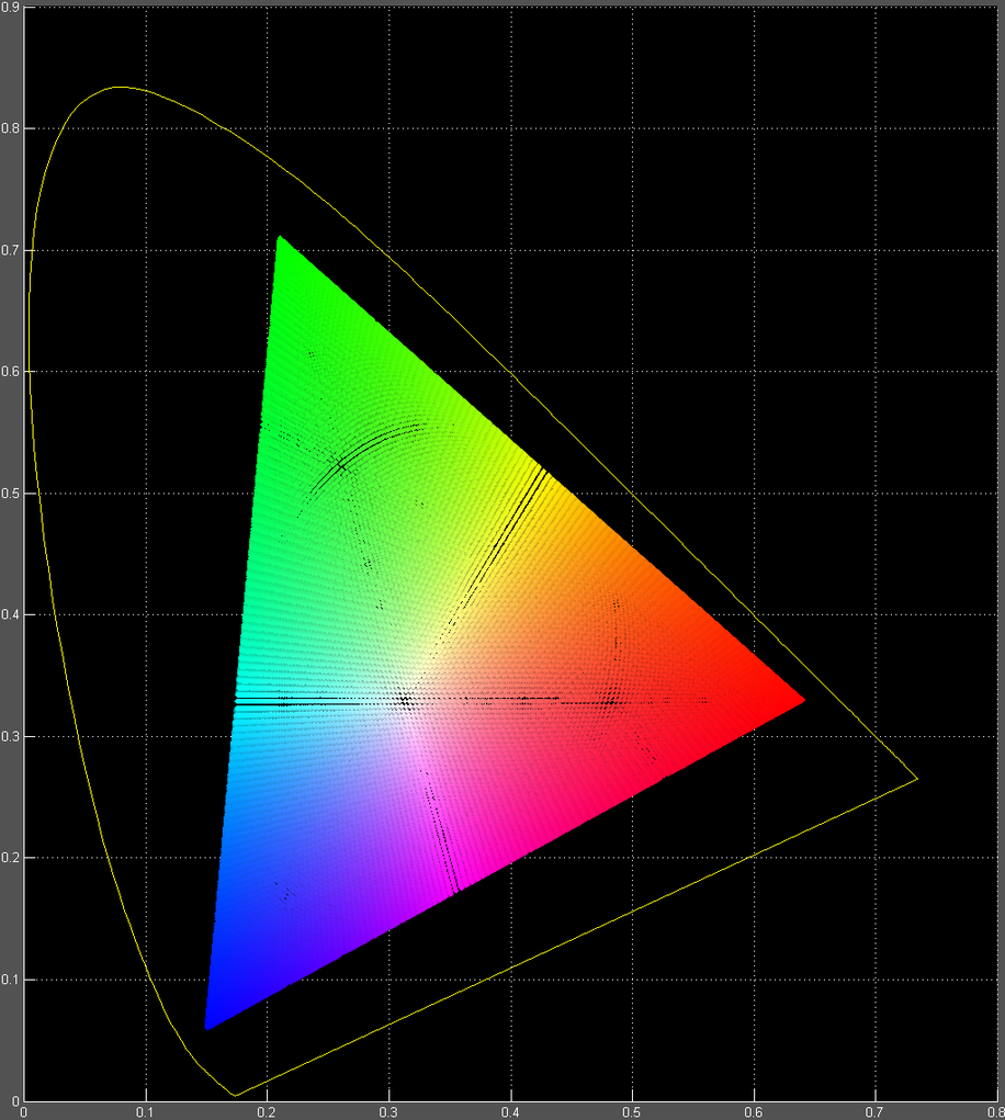 Ik wil graag voor een bepaalde kleurdiepte, gammawaarde en kleurruimte van RGB naar XYZ, zodat ik van XYZ naar xyY en L*a*b* kan. Ik heb inmiddels de onderstaande code geschreven om dat te doen na heel wat gepuzzel en van RGB naar XYZ naar xyY gaat nu goed (t/m regel 43).