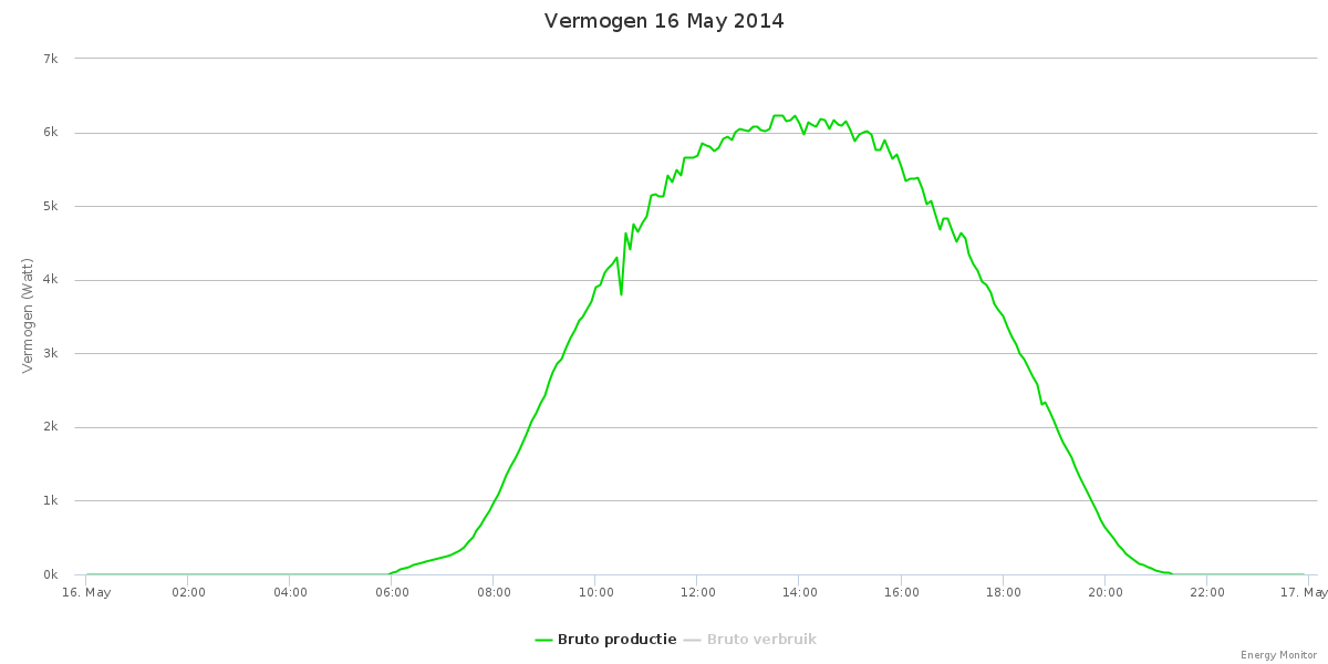 Onderstaande grafiek is van 16 mei wat een stralende dag was met een nagenoeg perfecte parabool.