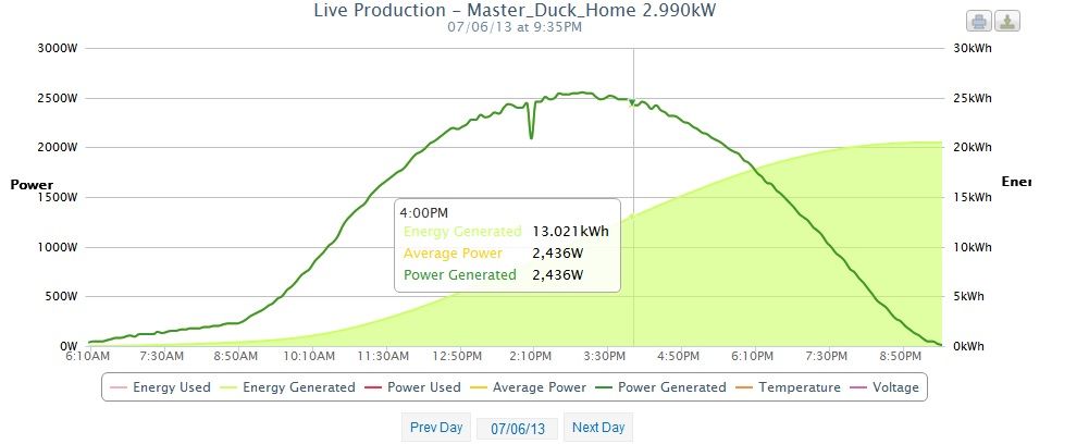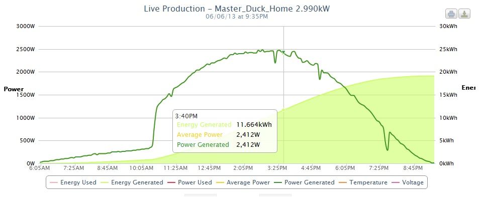 Aan de omnik 3k TL komt dan 2 x 1950 Wp te hangen, een beetje teveel, maar het maximale vermogen komt maar zelden voor. Wel heb ik dan op beide strings een lekker voltage voor de omnik en dat gaat hopelijk het rendement ten goede komen.