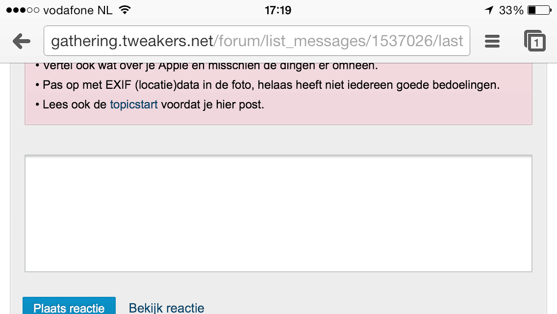 //edit: In welk topic had je dit? misschien staat daar een te breed plaatje in waardoor het tekstveld ook te breed wordt?