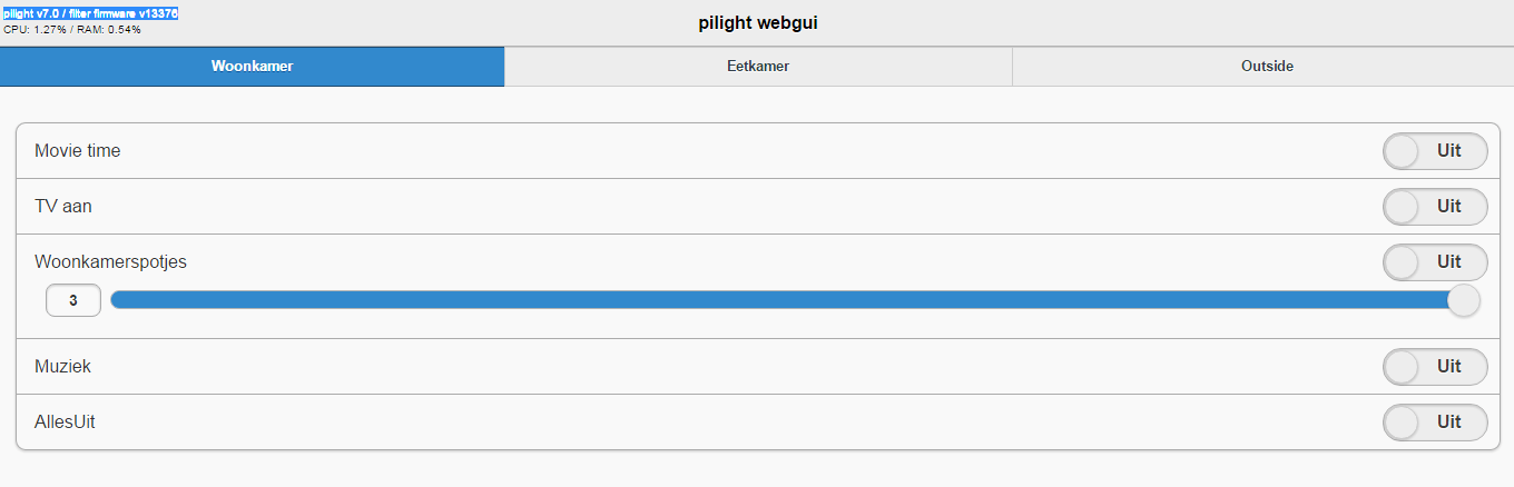 Alle systemen draaien pilight vanuit github, development branch.