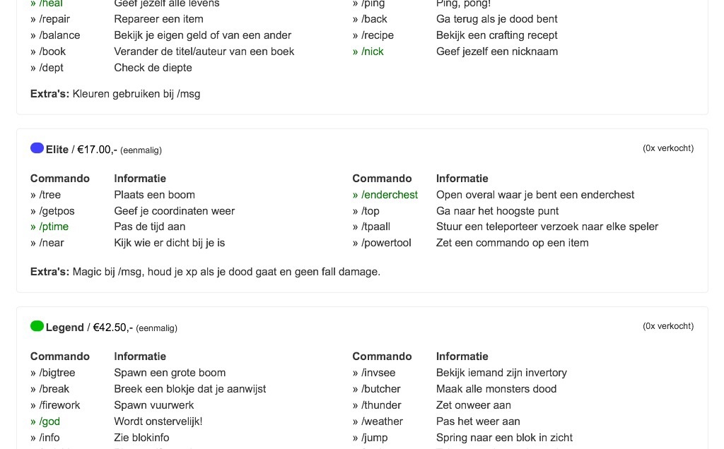 Vorig jaar mei heeft mijn zoon op een Nederlandse Minecraft server de rang "Elite" aangeschaft van zijn zakgeld voor €25.-. Met Deze aankoop was hij onbeperkt "Elite".