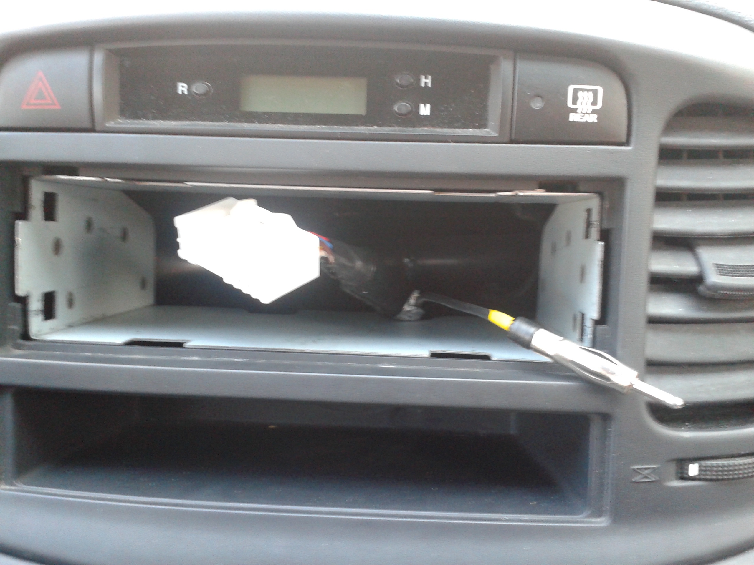 De stroom- en geluidskabels waren niet moeilijk (gestandaardiseerd) en de antenne al evenmin (adapter er van tussen halen). Maar...