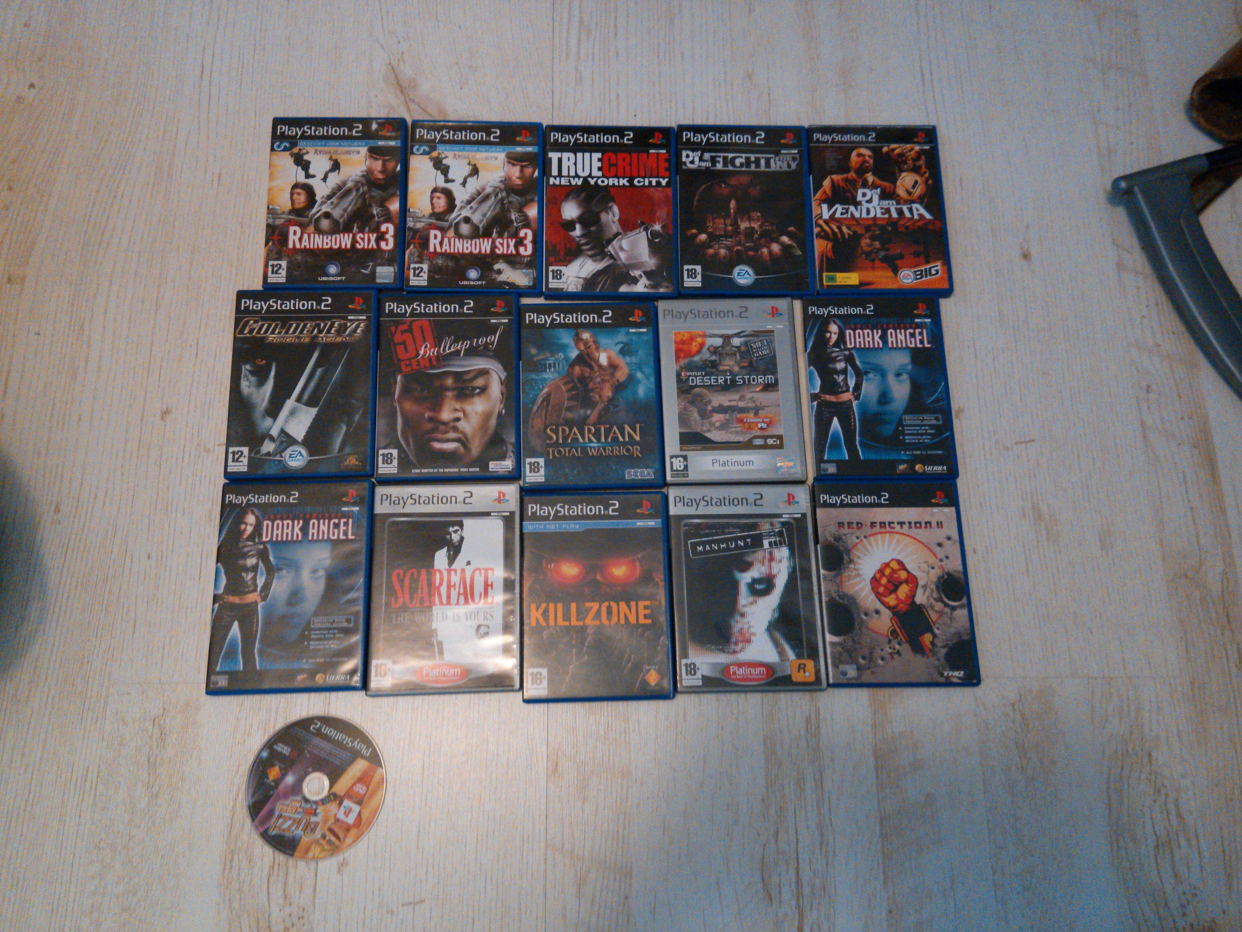 Vandaag van een collega een zilveren Playstation 2 gekregen met spellen. Niet heel geweldige spellen, maar ach. Meeste is voor de verkoop