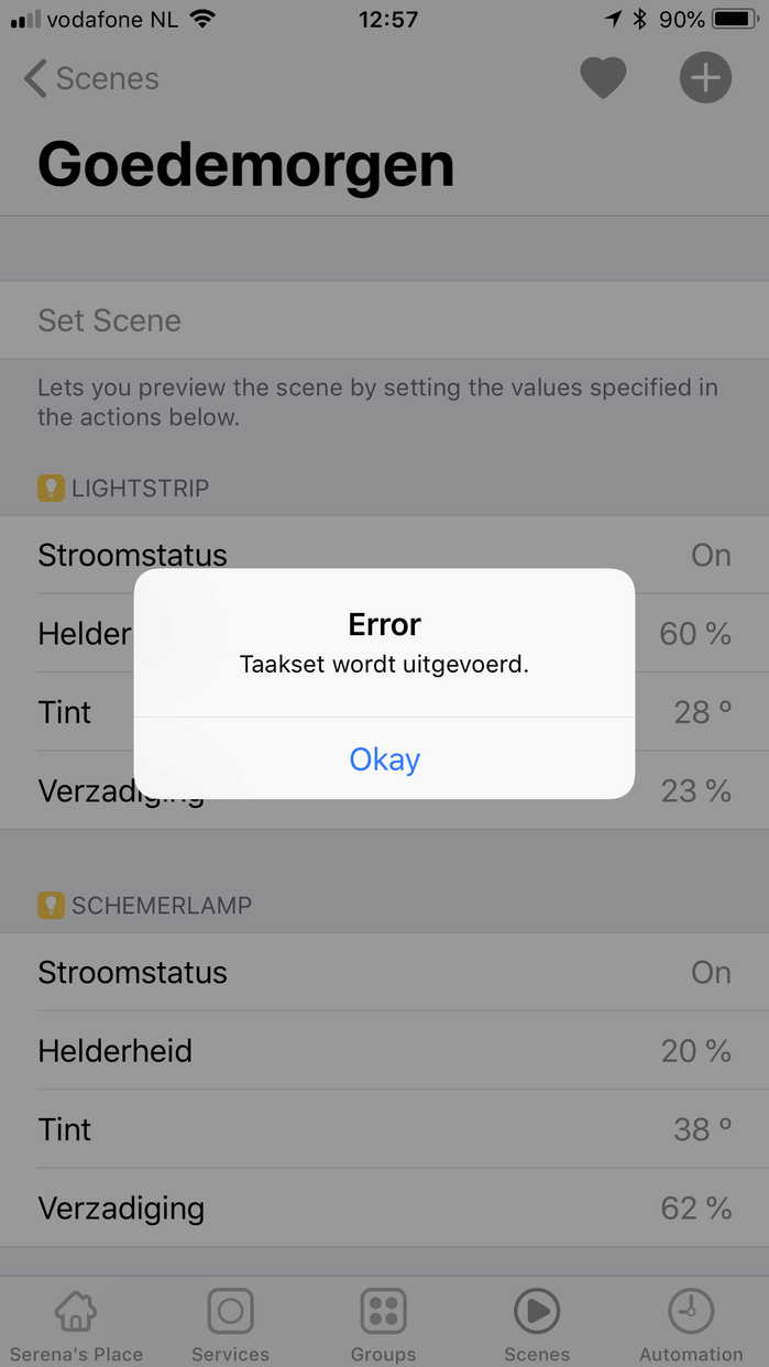 Raar, ik heb een scene die continue mislukt. Deze week deed een Eve stekker raar en die heb ik opnieuw ingesteld. Staat in meerdere scenes welke allemaal werken met uitzondering van 1. Als ik die selecteer gaat geen enkele lamp aan en komt meteen 'mislukt' in beeld. Huh?
