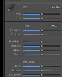 Die zijn de schuifbalken zoals ik die in Lightroom krijg: dit hoort zowel links als rechts van de knop hetzelfde weergegeven te zijn (zoals rechts van de knop). Iemand dezelfde ervaring of een oplossing?