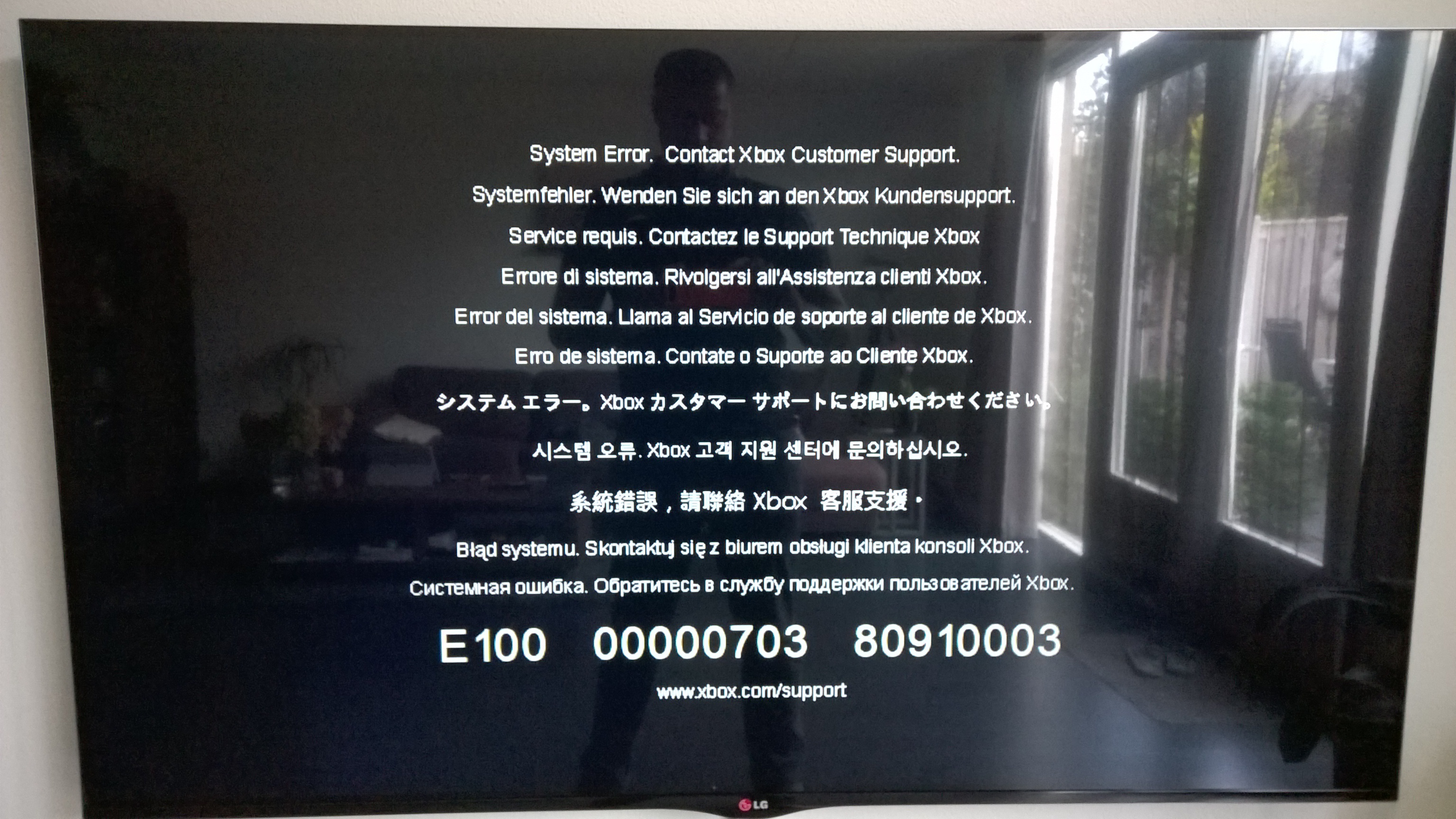 Xbox uit en weer aan zetten.....Krijg ik de melding dat er een system update is van 256MB die ik vorige week ook al geinstalleerd had. Update uitgevoerd....reboot en dan onderstaand scherm. Op xbox.com/support de code ingevoerd, krijg je in je scherm dat je xbox defect is en dat je hem moet opsturen ter reparatie.....zucht..... Xbox uit..... Xbox weer aan......groen voortgangs balkje......balkje vult zich.....BAM....gewoon weer op het normale home screen. Meteen de regio naar India gezet. Credit card gegevens ingevoerd.....Fifa 15 gekocht.....mailtje in mijn inbox dat ik 2700 roepies heb uitgegeven....Xbox terug naar US....