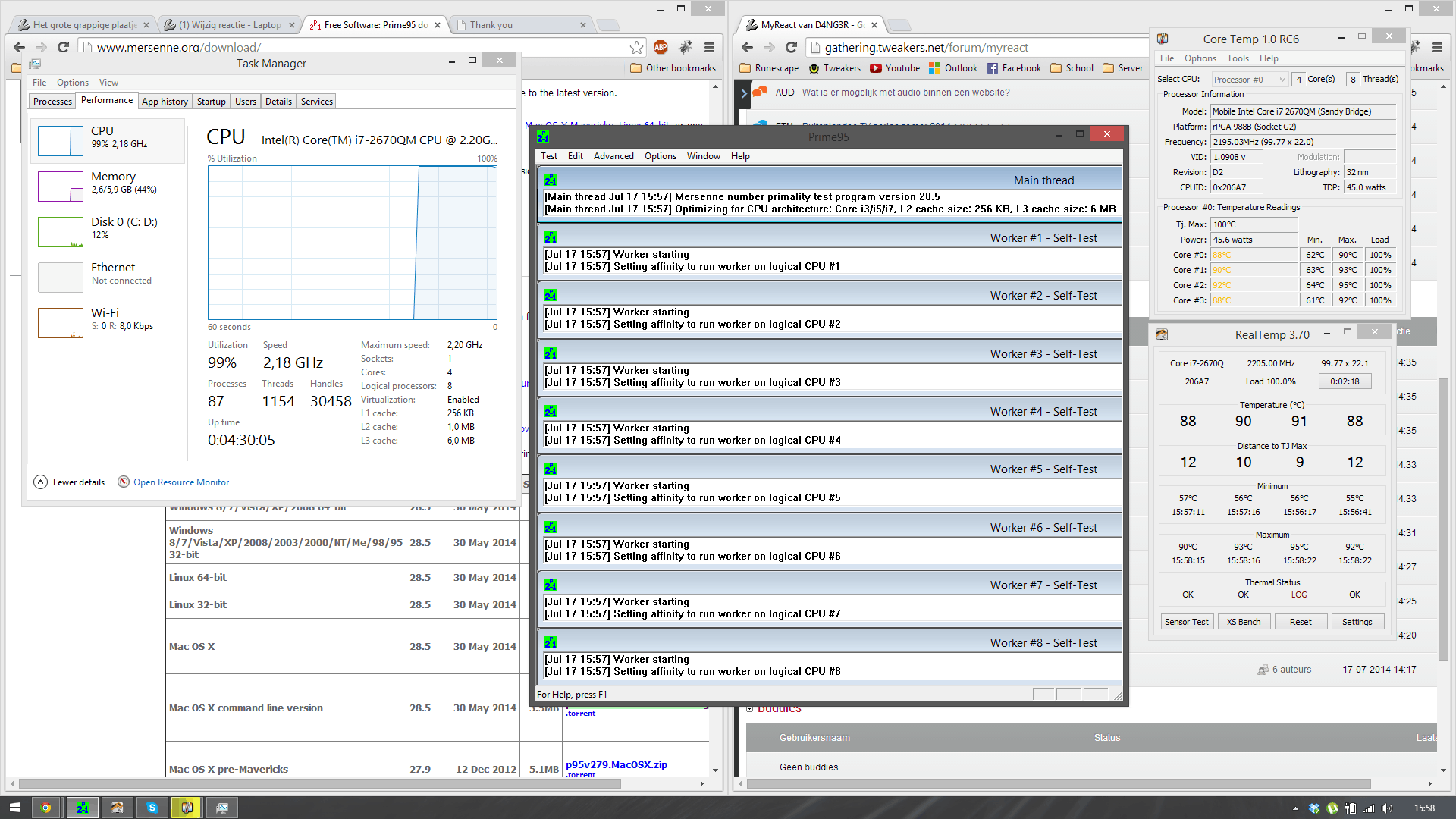 Hyperjumpers heb je de laptop open geschroefd? Zo ja heb je de koel elementen al los gehaald? Mijn ervaring is dat het stof zich meestal onder de ventilator kap heeft opgehoopt voor een voorbeeld zie deze link